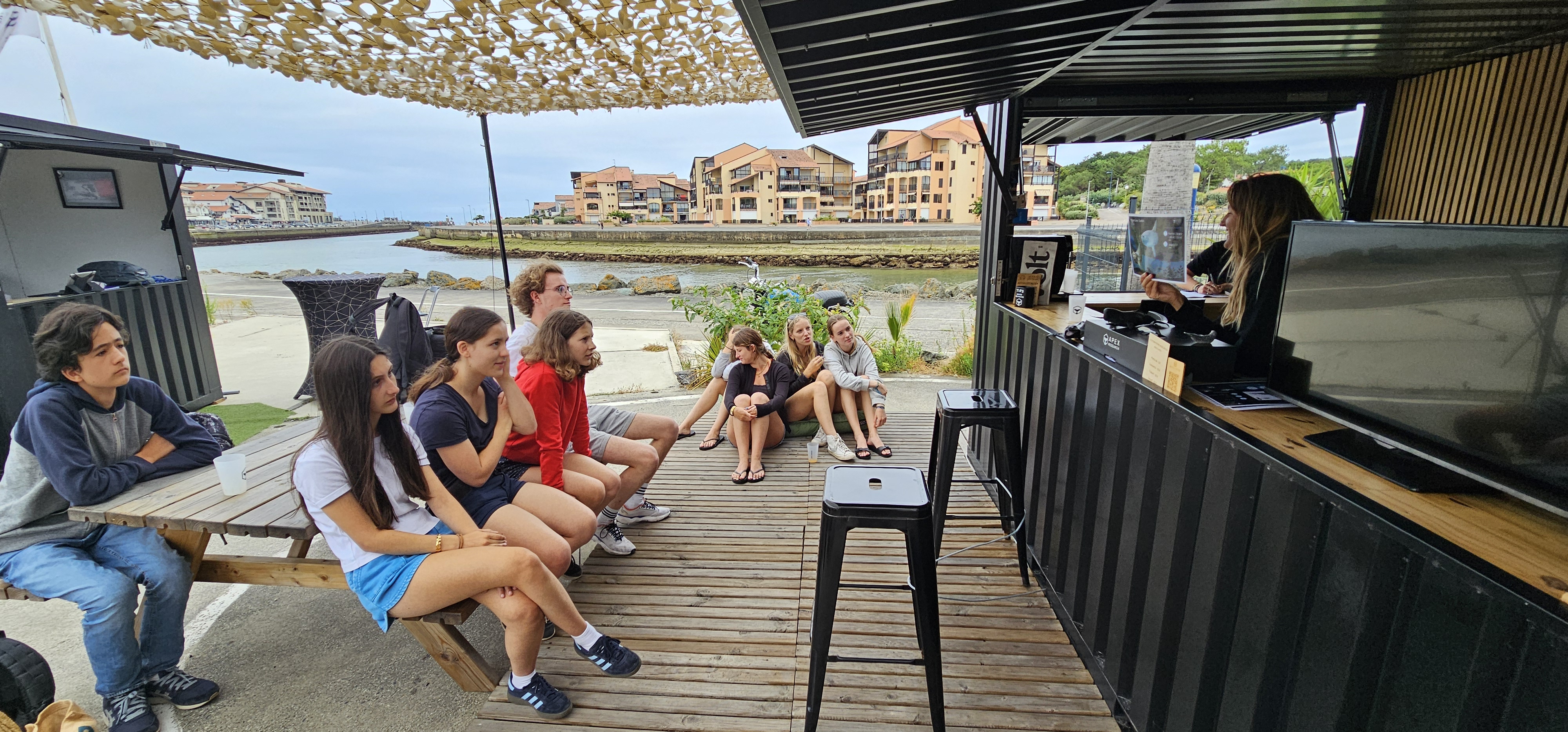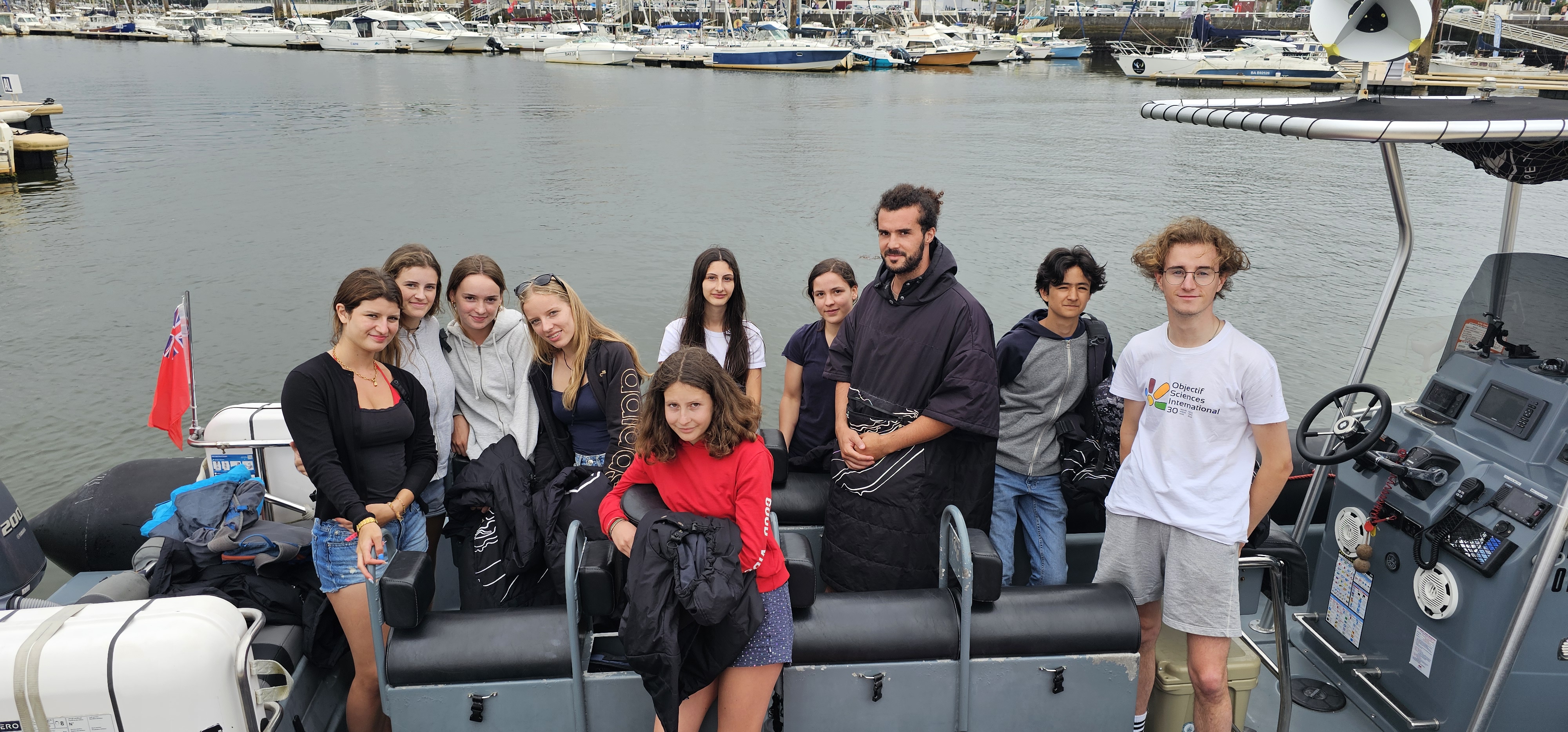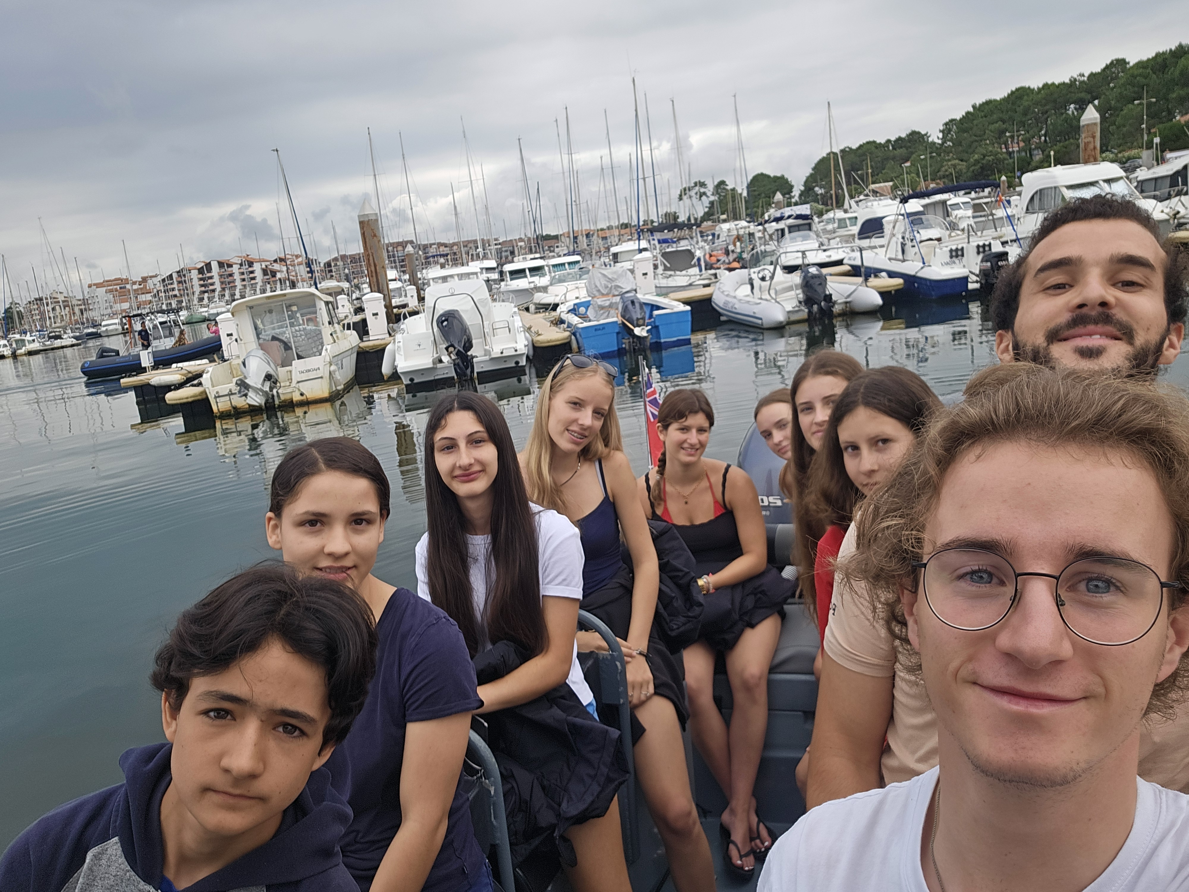 Ce matin, après le petit déjeuner, nous sommes partis pour Capbreton prendre le bateau. Une fois en mer, nous avons commencé la recherche de cétacés et en avons trouvés au bout d’environ une heure. Nous les avons admirés un moment avant que l’équipage saute à l’eau afin de réaliser une observation immersive (c’est le fait de plonger au milieu du pod). Ensuite, nous sommes à notre tour descendus dans l’eau équipés de masques et de tubas pour tenter de les apercevoir nager sous l’eau. La baignade a permis de calmer les maux de mer potentiels et a duré environ 30-40 minutes, durant laquelle nous avons tous eu la chance d’observer ces dauphins. Nous sommes ensuite rentrés au port et avons repris le car après avoir pique-niqué. Nous avons directement enchaîné avec une visite du centre-ville de vieux-boucaux ce qui nous a donné l’occasion de faire quelques petits achats. Nous sommes maintenant rentré au centre du Pignadar et allons bientôt aller dîner et profiter de la veillée avec le groupe.