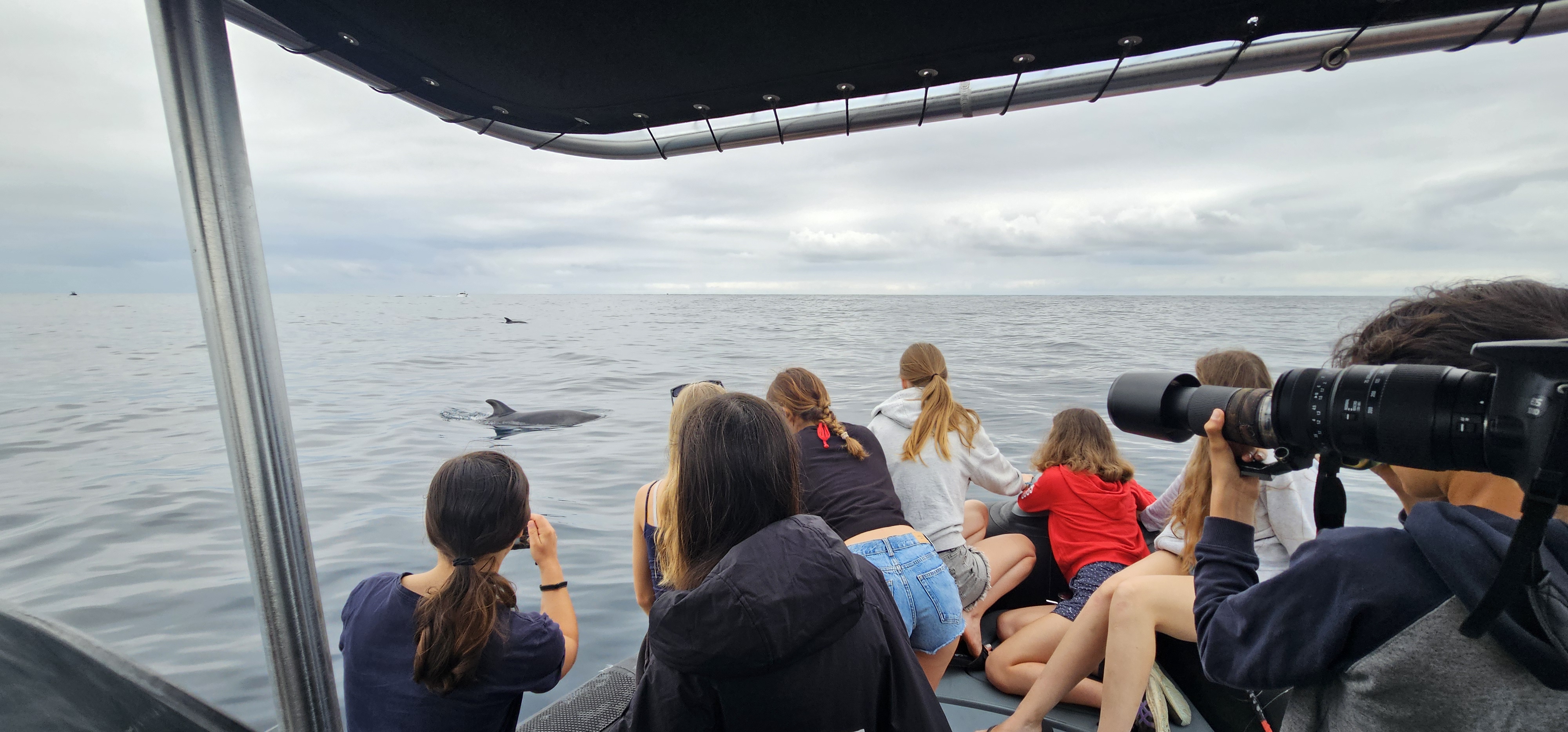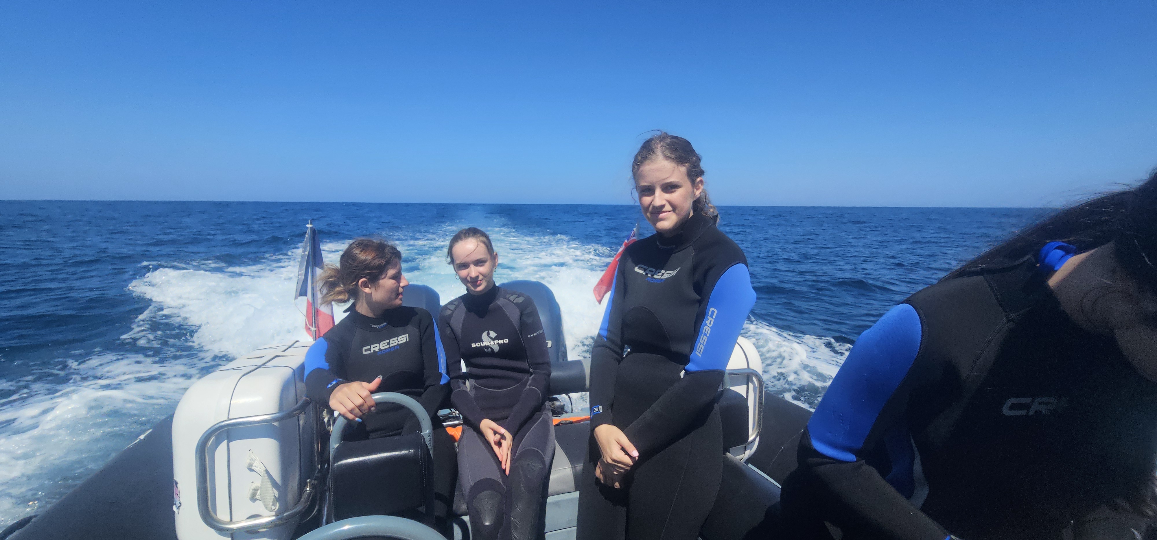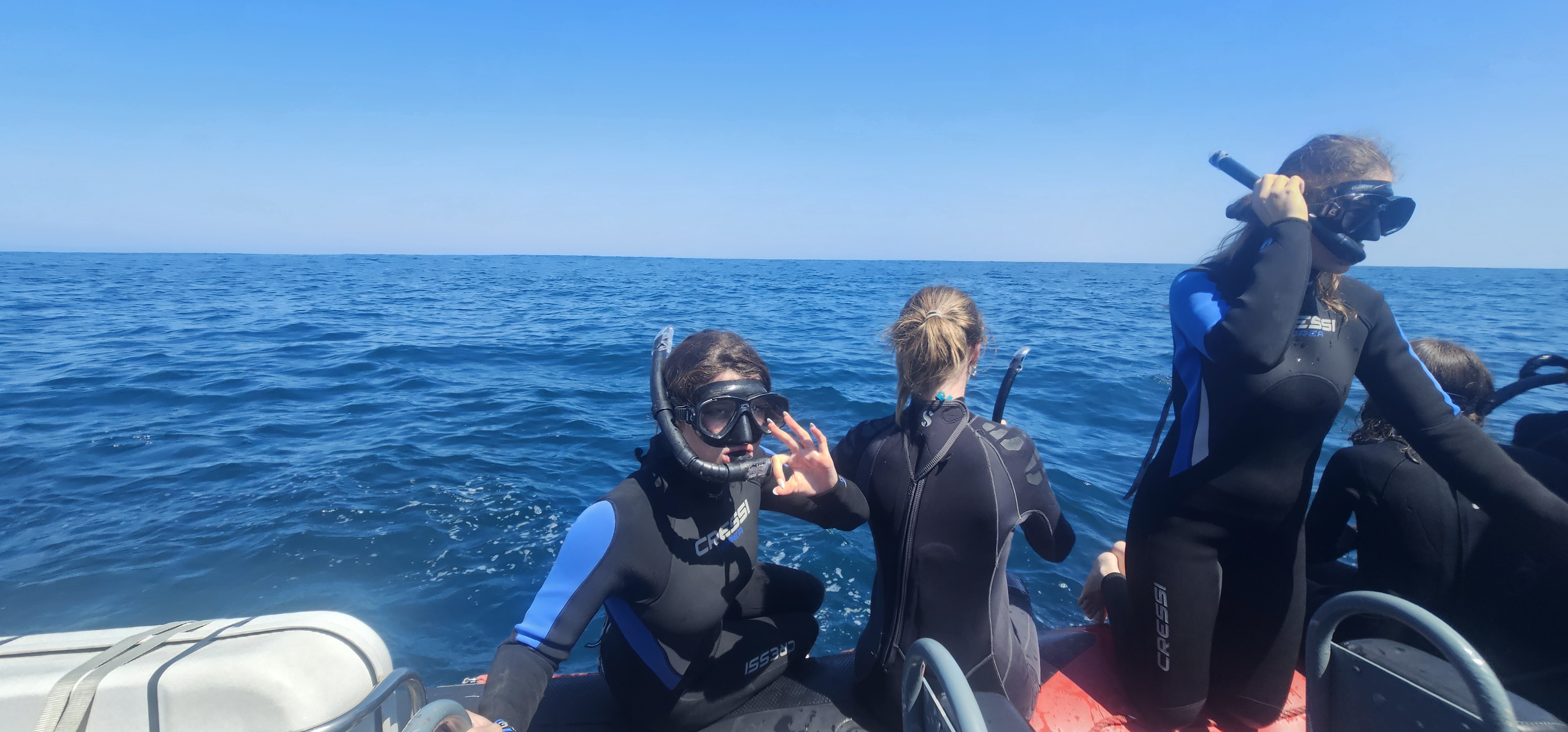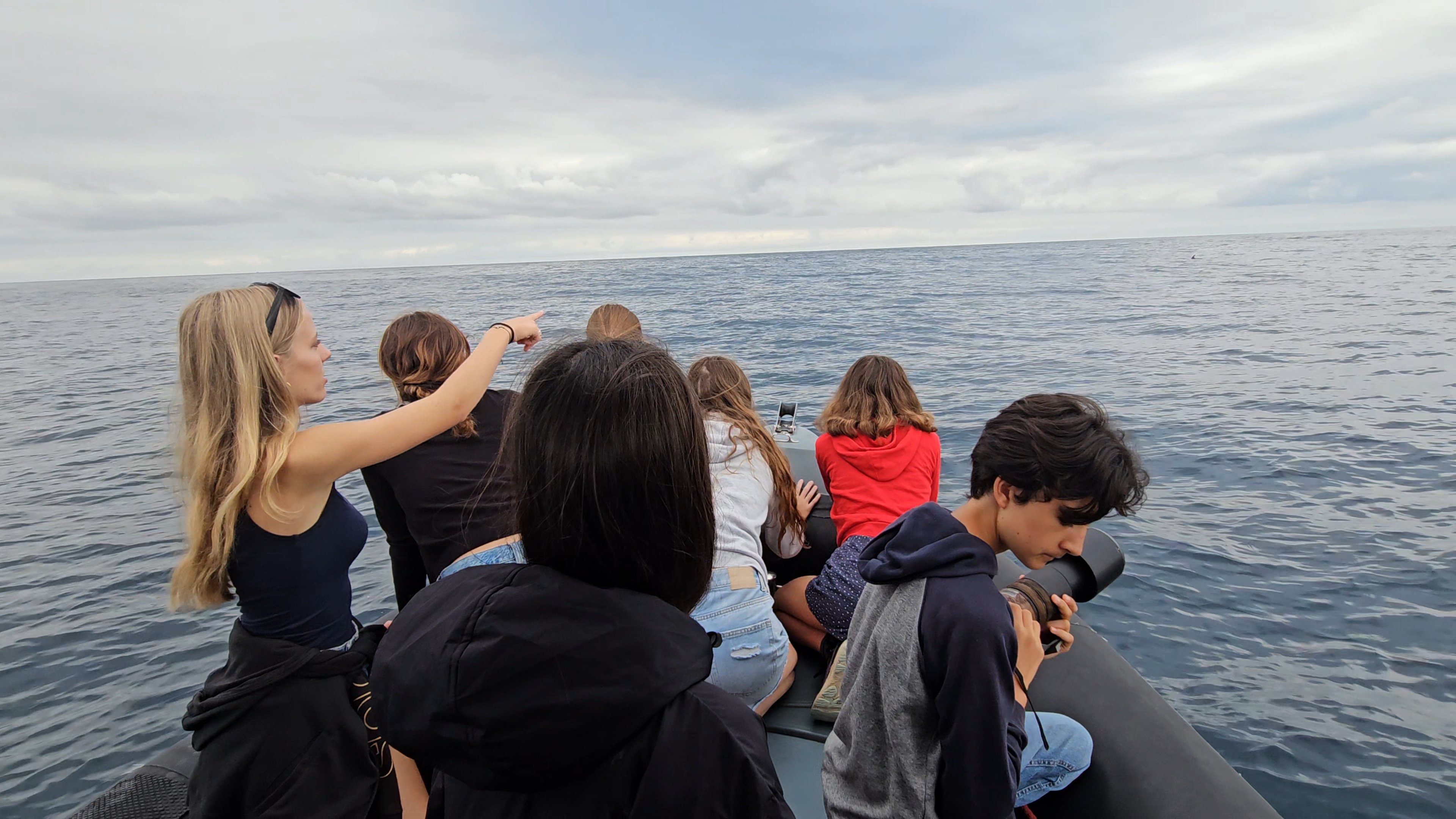 Nous sommes sortis en mer avec l’équipage d’apex cetacea. Nous avons eu la chance de pouvoir identifier et observer deux espèces de dauphins (dauphin commun (delphinus delphis) et grand dauphin (tursiops truncatus), des poissons lunes (mola mola) et des thons rouges. Nous avons donc pu apprendre les règles d’approche des cétacés : pour approcher un groupe ou un pod de dauphins il faut placer le bateau au trois quart arrière ou trois quart avant sans couper leur trajectoire.
