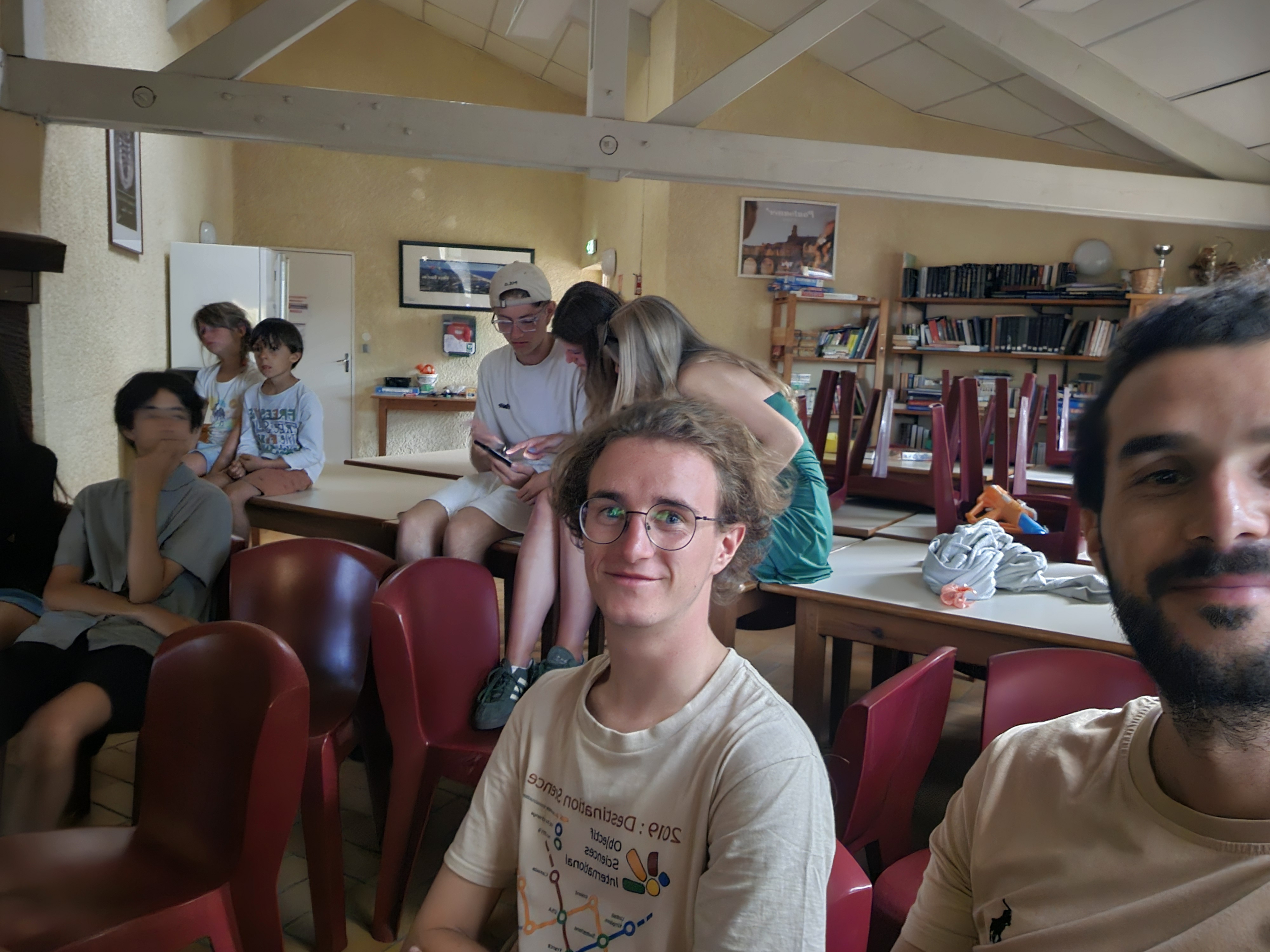 Ce premier jour, chacun prend ses marques, pour connaître les autres, le centre, et nos accords de vie en groupe avec des jeux de présentations (Lucky Luke, Hi-Ha-Ho, dessin maboul, etc.).