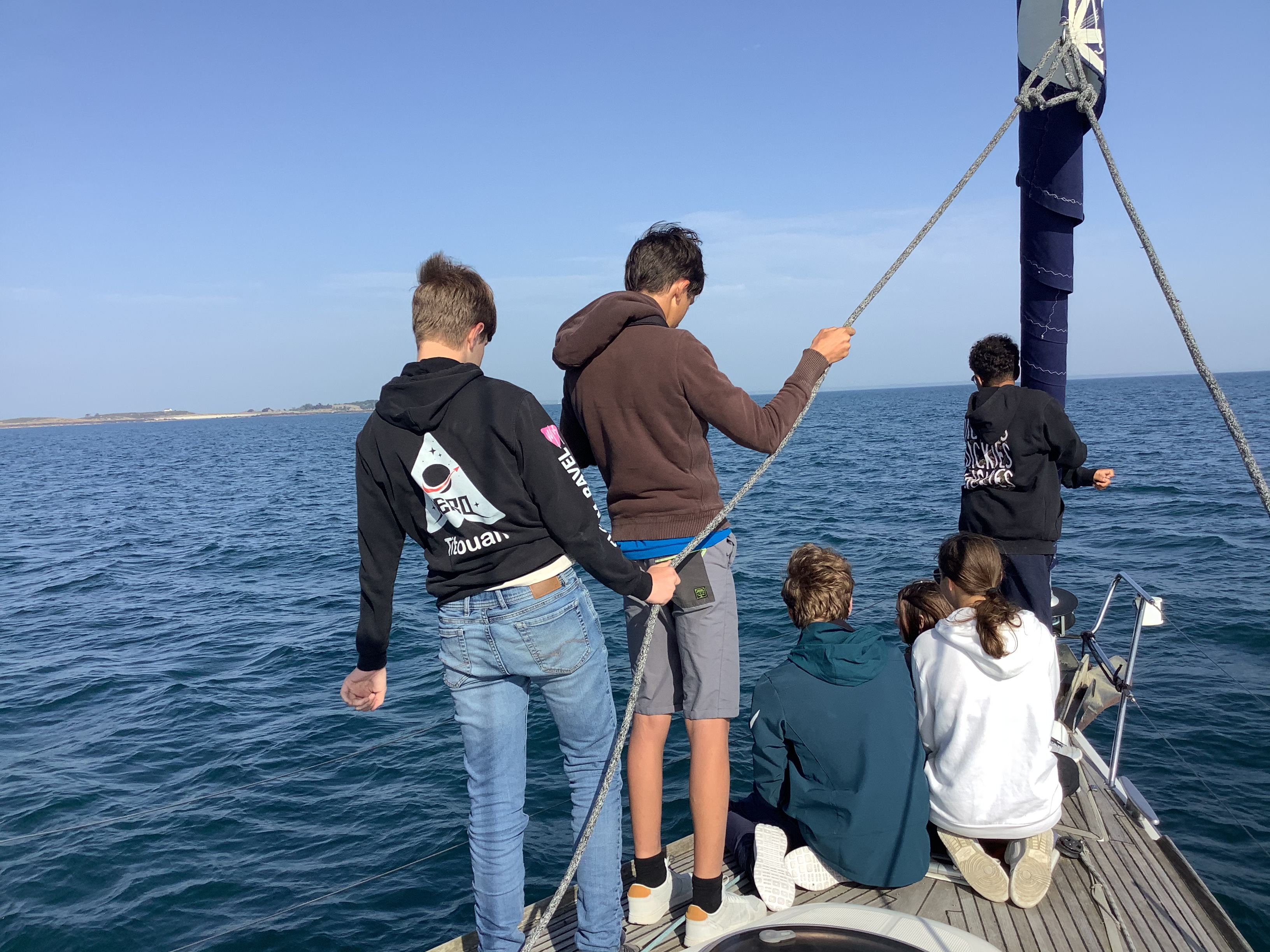 Ce matin, la moitié de l’équipage a appris à faire les différents nœuds pour pouvoir partir ou arriver dans un port.