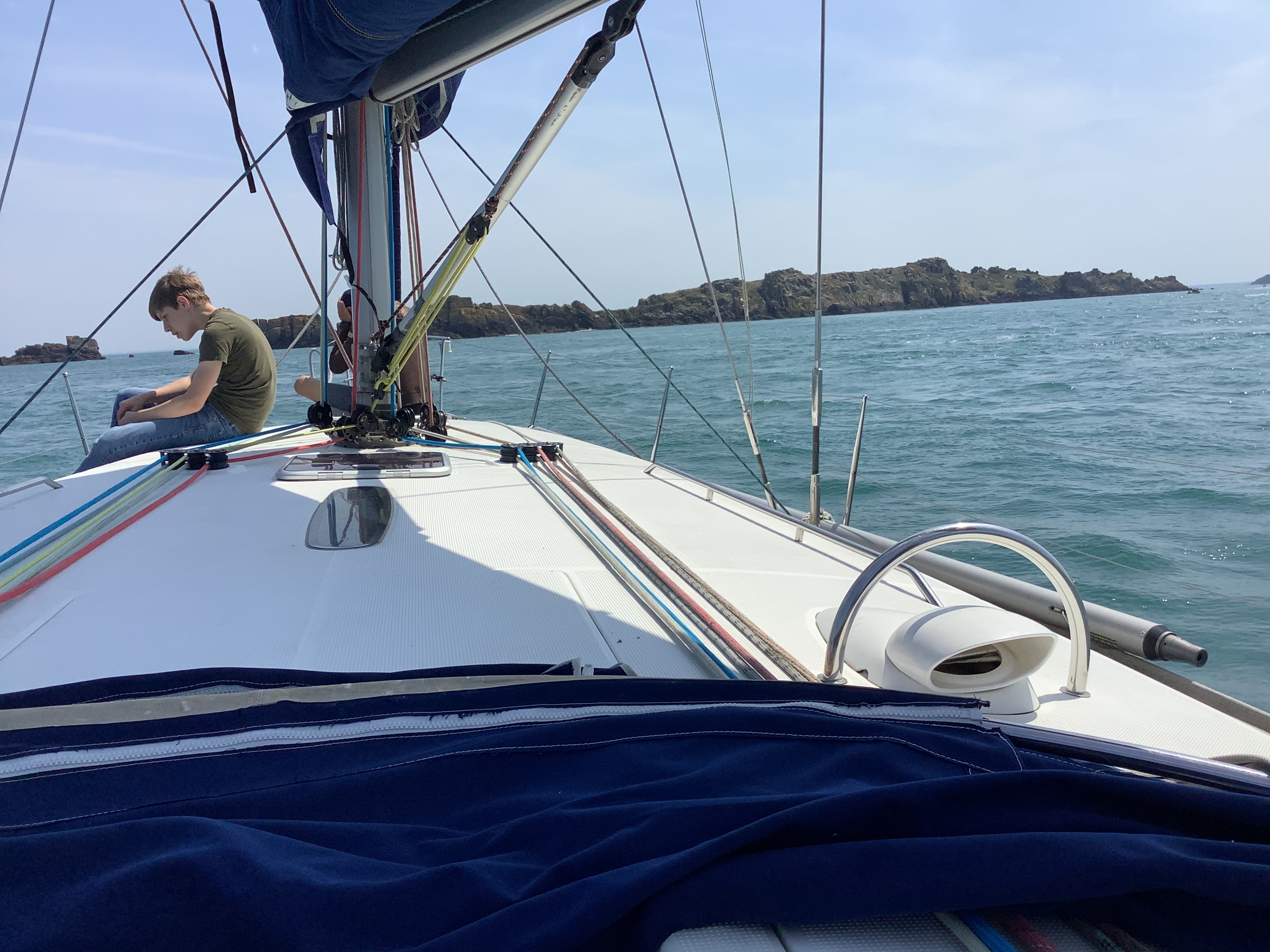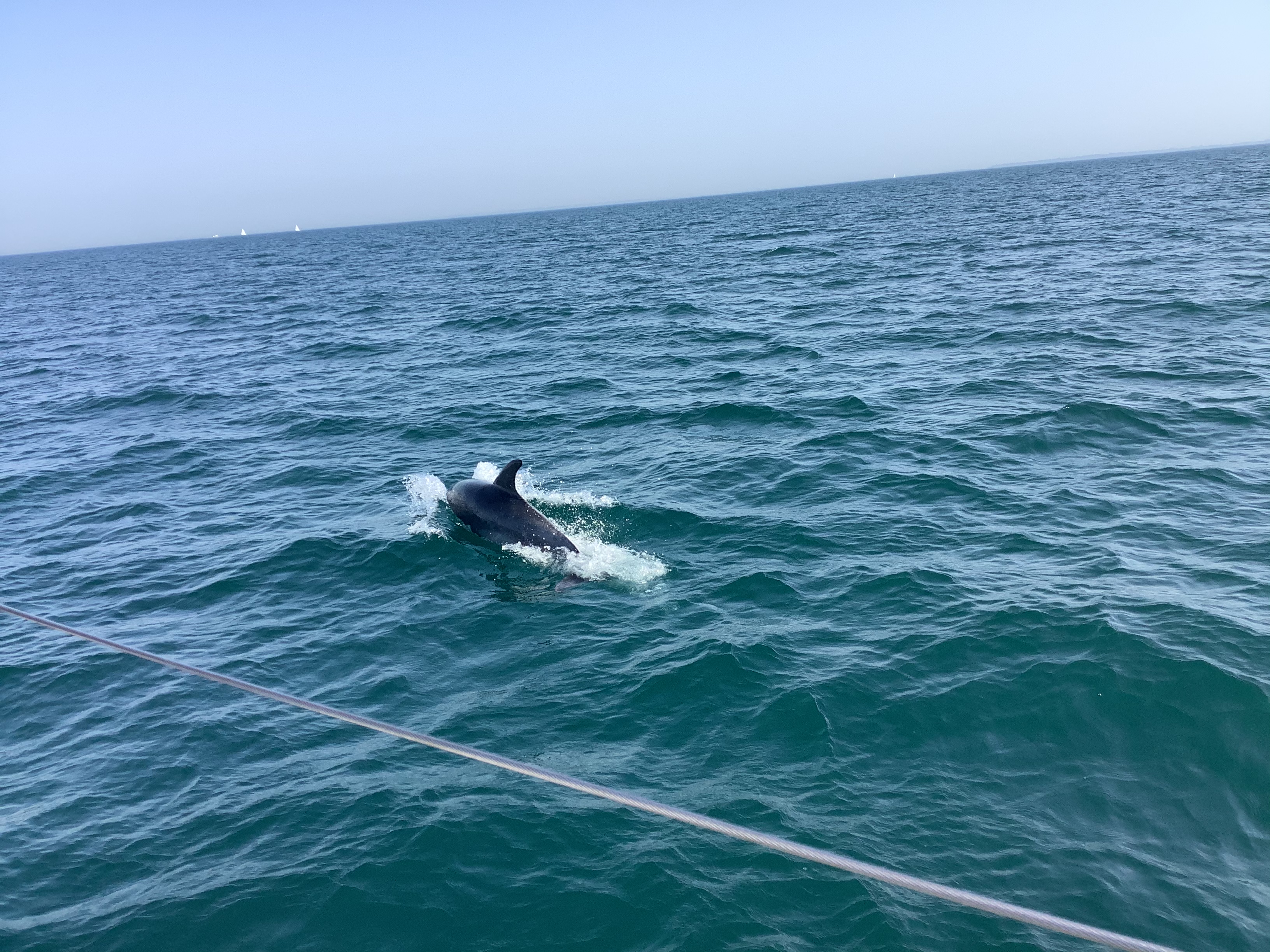 En revenant vers les îles Chausey, nous avons eu la chance d’avoir été escortés par un groupe de 5 grands dauphins que nous avons pu observer de très près. Nous avons jeté l’ancre à 19h30 au pied du phare.