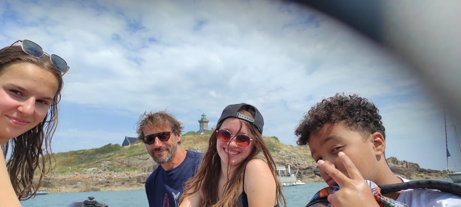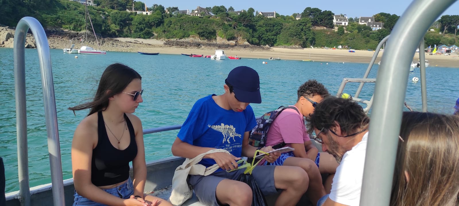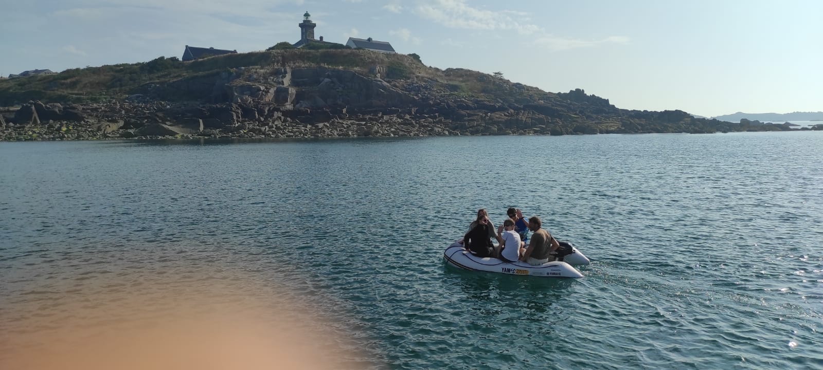Peu après le petit déjeuner, un petit bateau à moteur nous a servi de navette pour aller à terre sur une plage de Cancale.