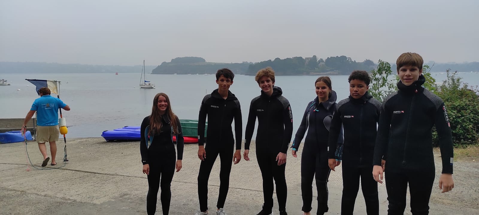 Nous avons commencé par nous lever à 7h20 . Nous sommes ensuite descendus prendre le petit déjeuner . Nous avons récupéré le pique-nique et nous avons filé à la cale de Jouvente. Nous nous sommes tous mis à l’eau et nous avons appris à faire le phoque et le canard ( qui sont des techniques de plongée ) puis nous avons fait la course dans l’eau.