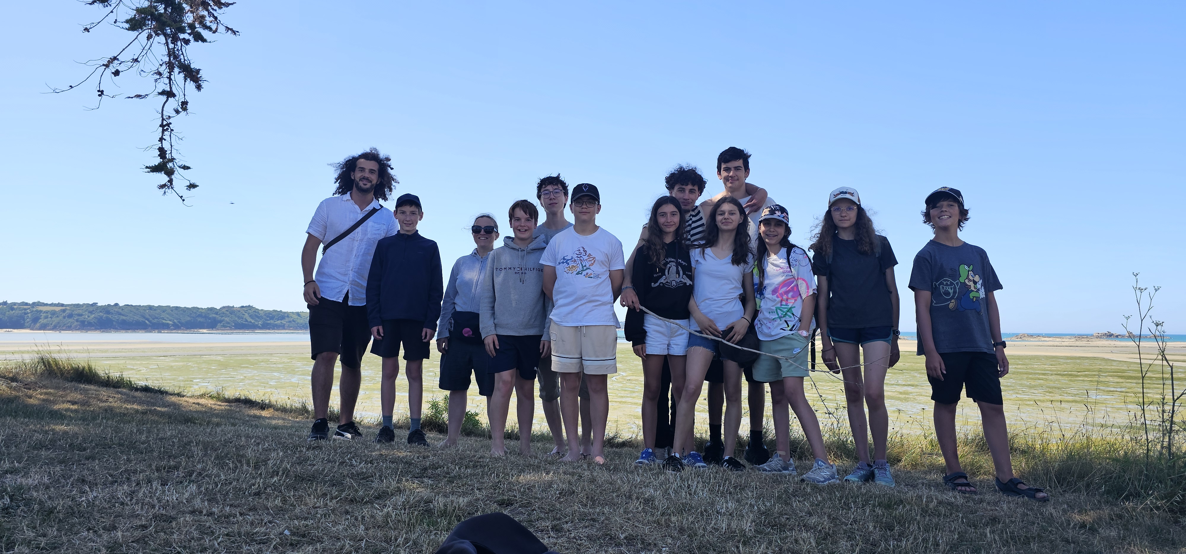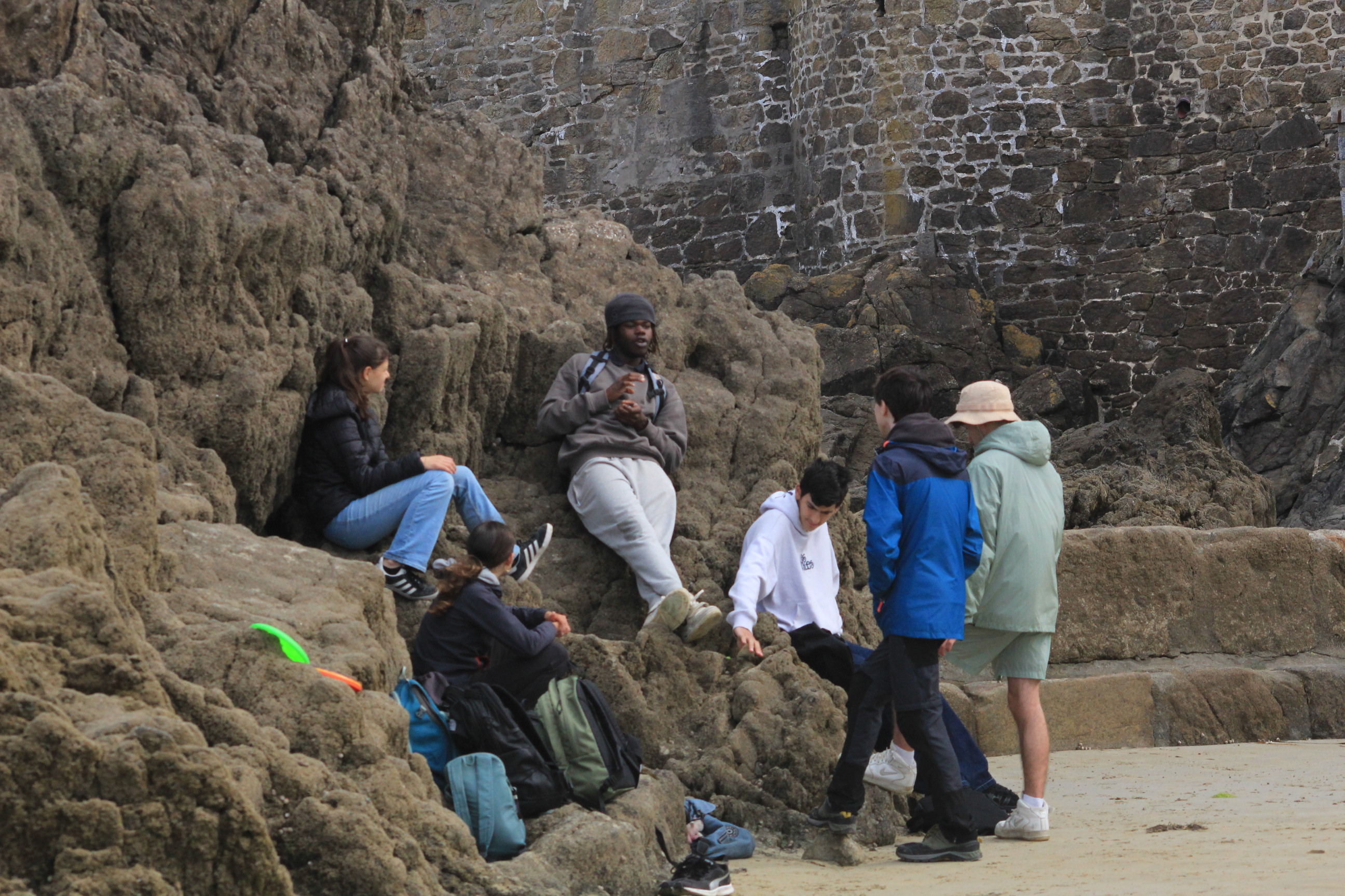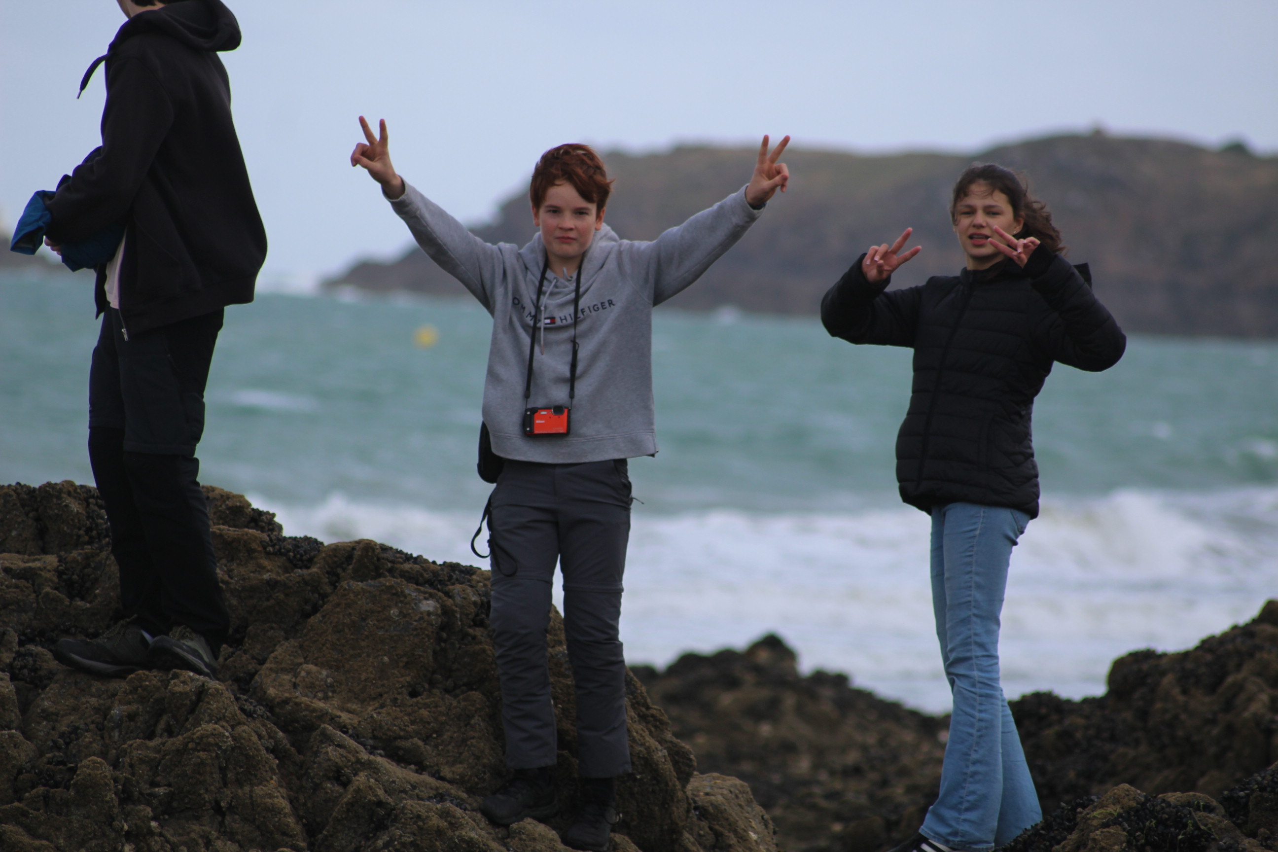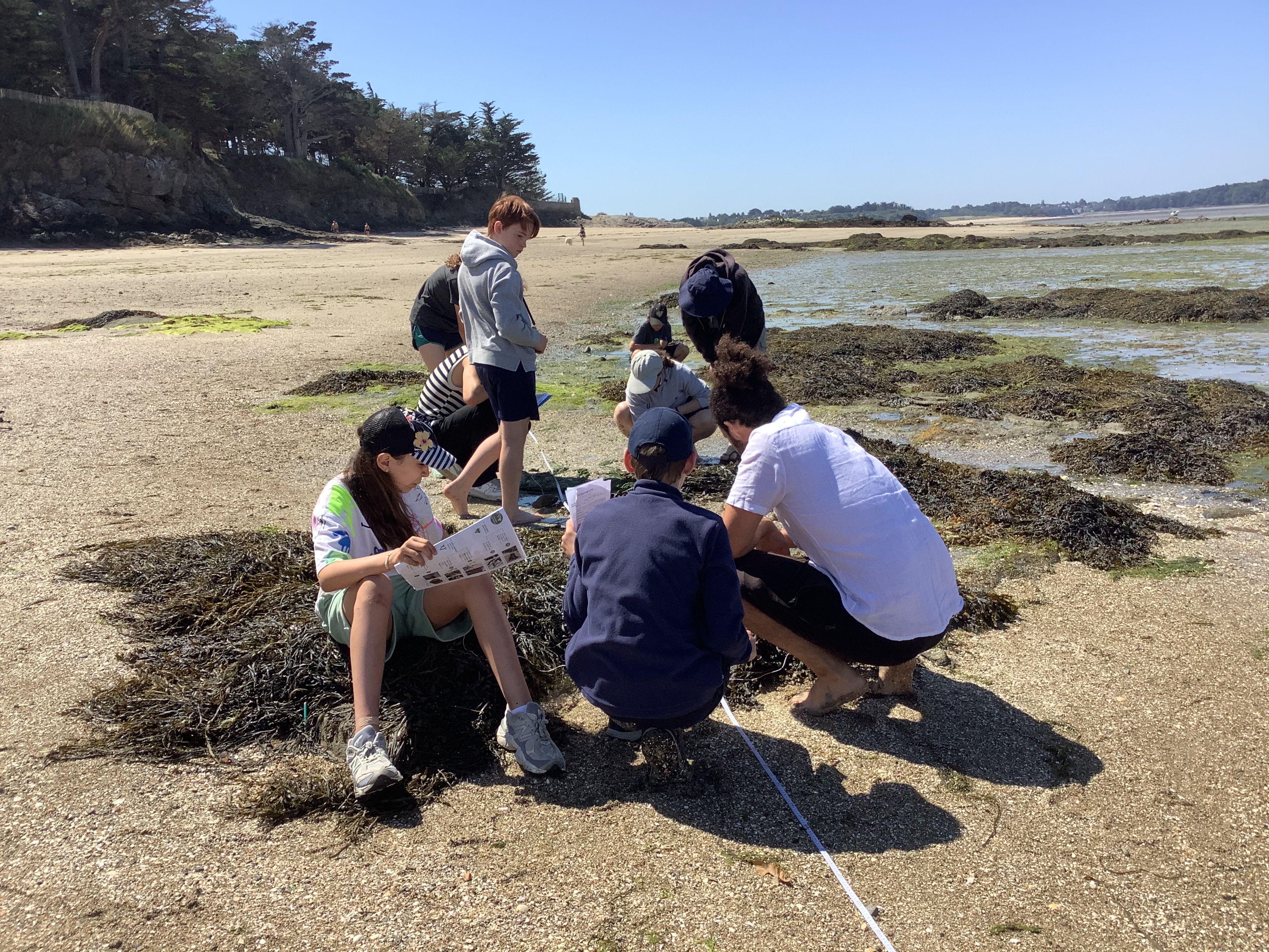 Ce matin nous nous sommes lever à huit heures et quart. Après le petit déjeuner avec des choix très restreint nous sommes ensuite partis vers la plage de Haas dans la ville de jacet la mer pour démarrer un protocole scientifique sur le bord de la plage. Le but du protocole était de placer un transect de vingt cinq mètres de long ou nous plaçons ensuite quatre quadrats dans ces quadra ,à l’aide d’une clef d’identification nous avons pus identifier les espèce. Après l’effort le réconfort, comme le dit si bien l’expression célèbre (surtout pour les ado) nous nous sommes autoriser à manger le repas qui était plein de calcule mathématiques pour pouvoir tout partager équitablement. Après le pic-nic nous avons suivis un long sentier avec beaucoup de vase et de sable. Là-bas certain faisaient de la grimpette ou cherchaient de beaux coquillages pour conclure nous remontâmes le même chemin qu’à l’aller. de retour au gite nous repartîmes à la plage pour faire des grands trou avec des grands remparts mais la mer monter et nos châteaux se firent tous engloutir. Sur le chemin nous croisâmes des camions qui vendait des saucissons et des bananes.