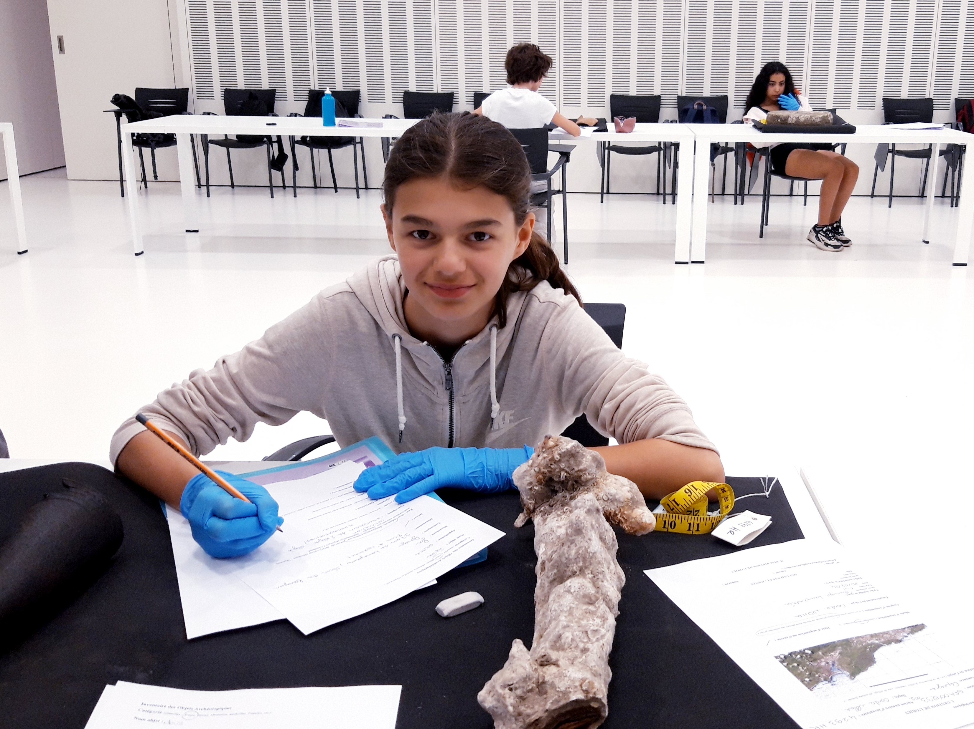 On a fait de la vraie de vrai archéologie, hyper pro, avec pleins de détails, mesures, dans une salle toute blanche, des bureaux noires, et des gants ! Vraiment pro, donc on avait des fiches pour nous aider : identifier le matos (bronze, fer, etc...), les mesurer, les dater, leurs histoires, leurs état, ... et donc au final, la collection appartenait à Thomas Hernandorena, homme plongeur du 20e siècle, formé avec Cousteau, qui a mal terminé sa vie (en prison !). Sa collection comprenait des objets de tous les temps, de l’Antiquité jusqu’à l’Epoque Contemporaine.