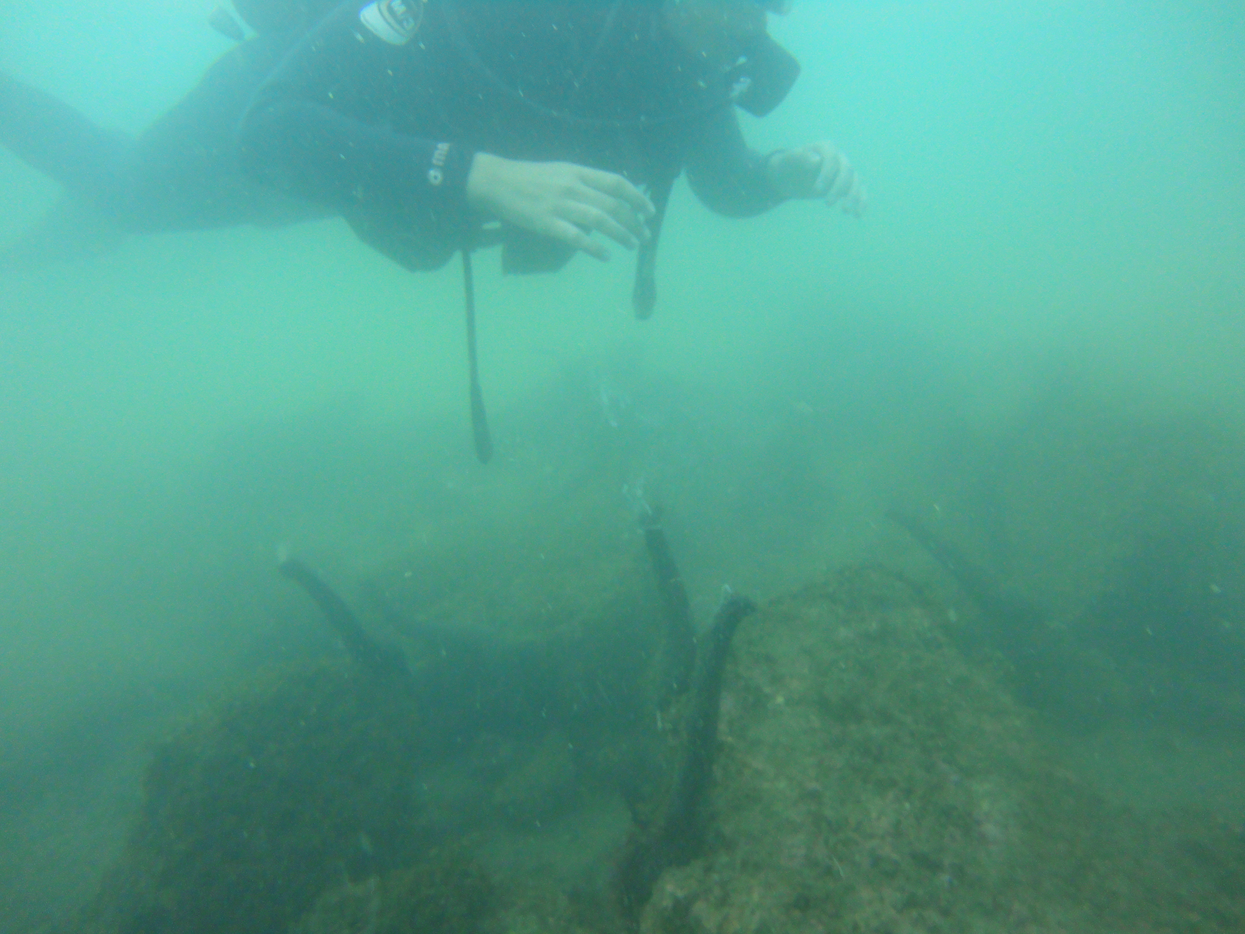 Le matin, après le petit déjeuner, nous avons construit une maquette de la coque d’un navire du 16e siècle. Certains d’entre nous se sont rendus dans une forêt pour observer les différentes formes des arbres qui auraient été utiles pour bâtir les parties qui constituent la coque d’un bateau. En plongée, l’après-midi nous avons exploré l’épave du Criterion où nous observions les piles de sacs de ciment et compartiments du navire pour les documenter.