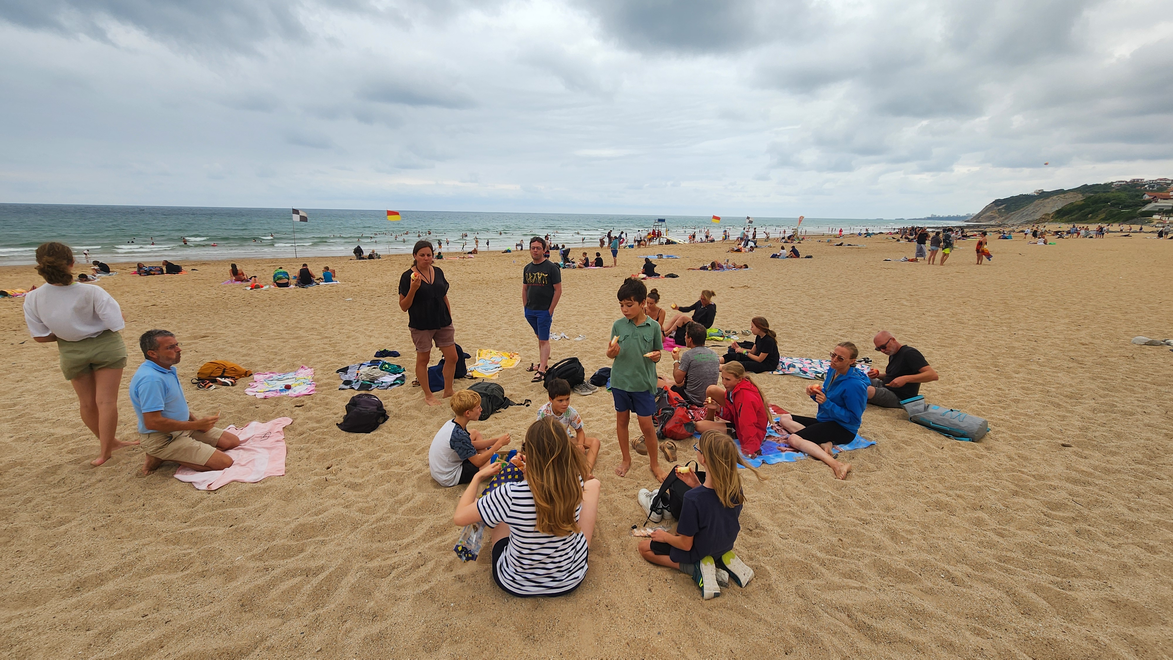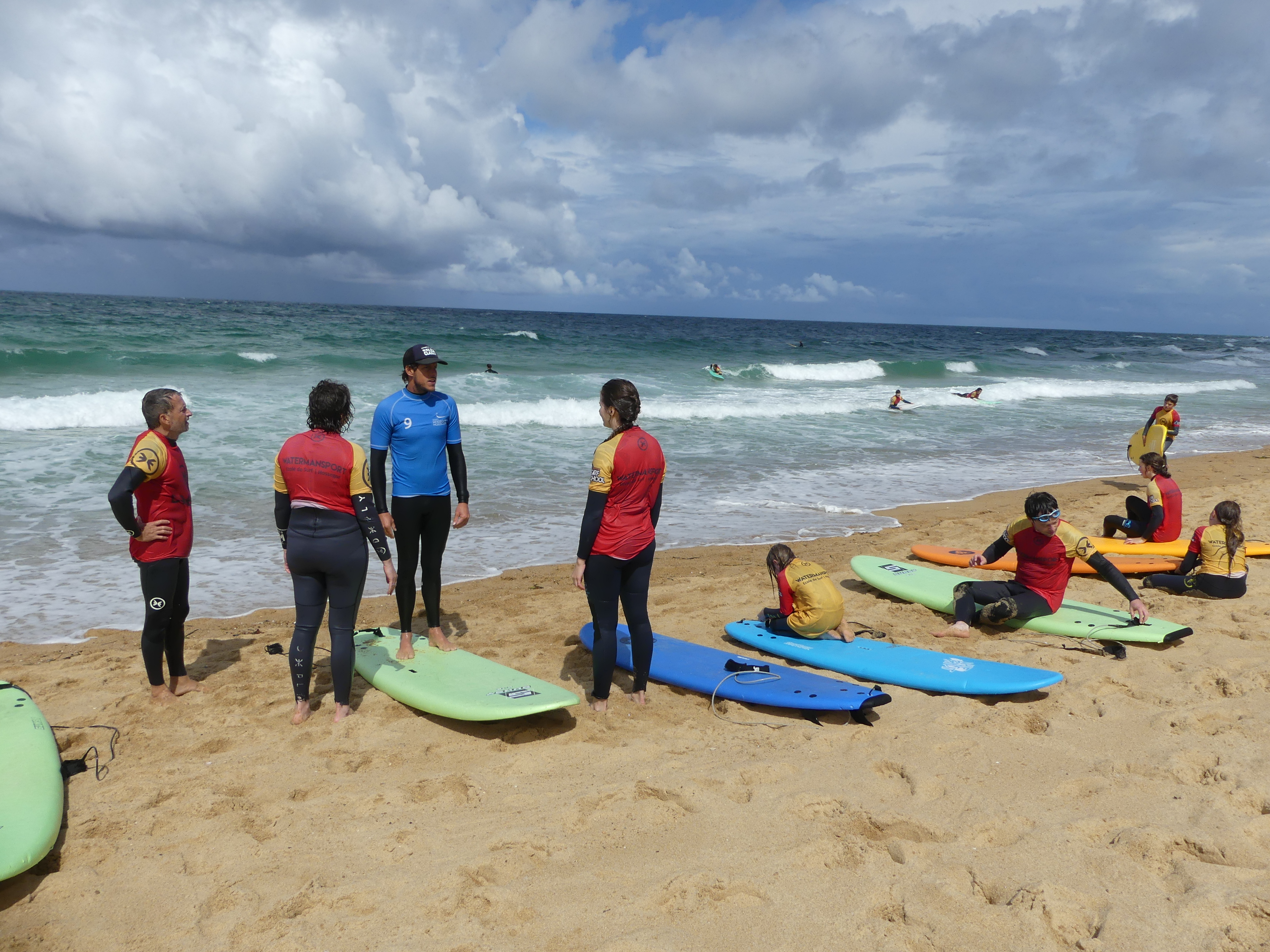 Jeudi matin, c’était découverte du surf avec Rozenn. Après un briefing sur la plage, le grand bain, mais la houle a interrompu la séance.