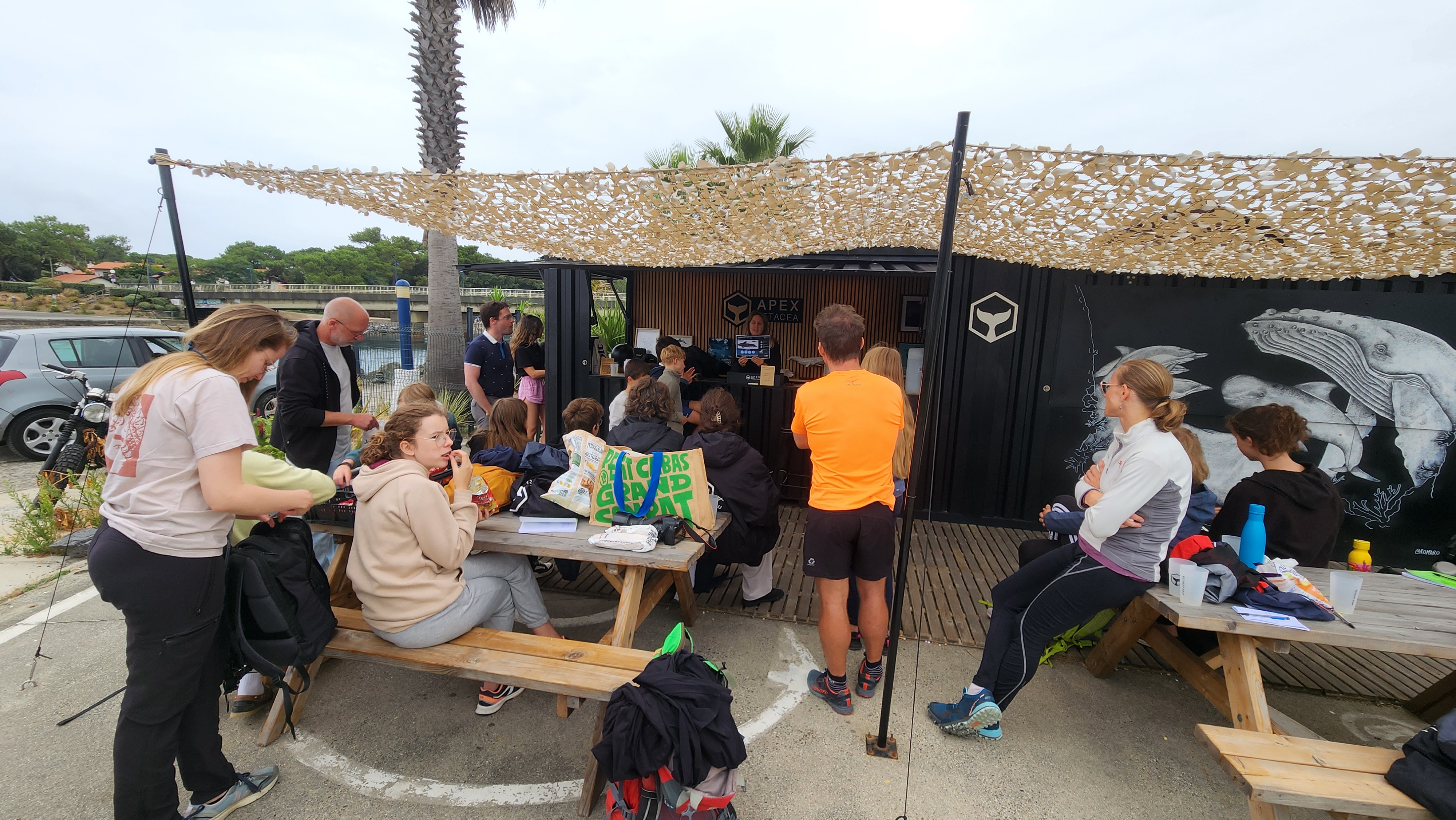 Sur la pause de midi, on se retrouve tous pour un pique-nique pédagogique : APEX nous raconte plein de choses sur les animaux qu’on trouve dans la région (dauphins communs, bleu et blanc, marsouins, orques, baleines à bosses etc.), comment les reconnaitre, ce que fait leur association (surtout identification et sauvetage des animaux marins) etc. Que de choses à apprendre !
