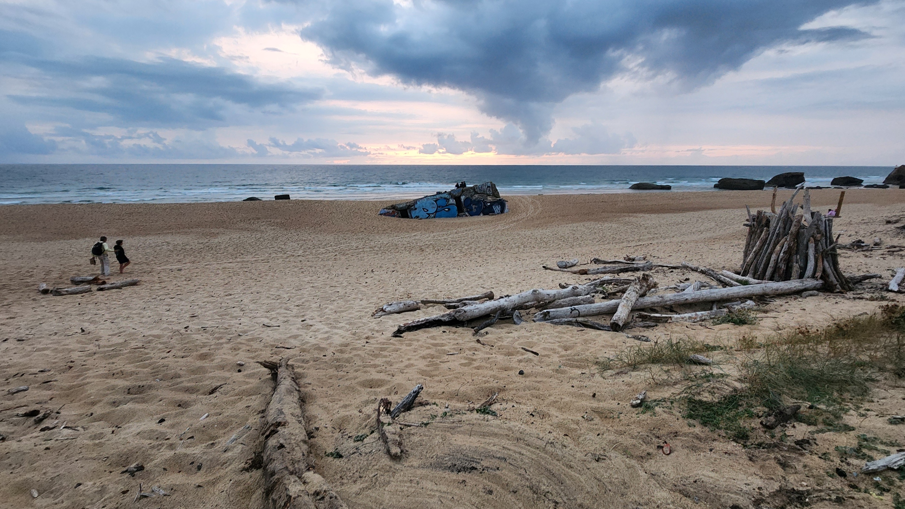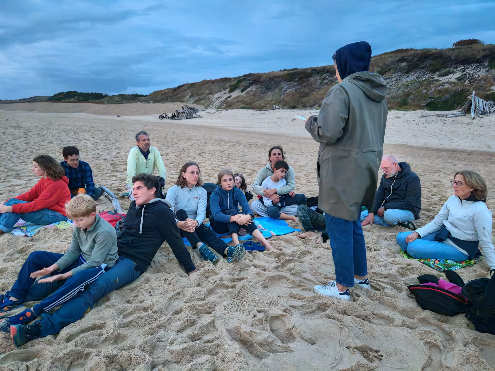 Retour vers 17h, diner (excellent, comme d’habitude) puis veillée à la plage pour visiter des bunkers mystérieux et cassés et lire des histoires dans le noir… Magique !