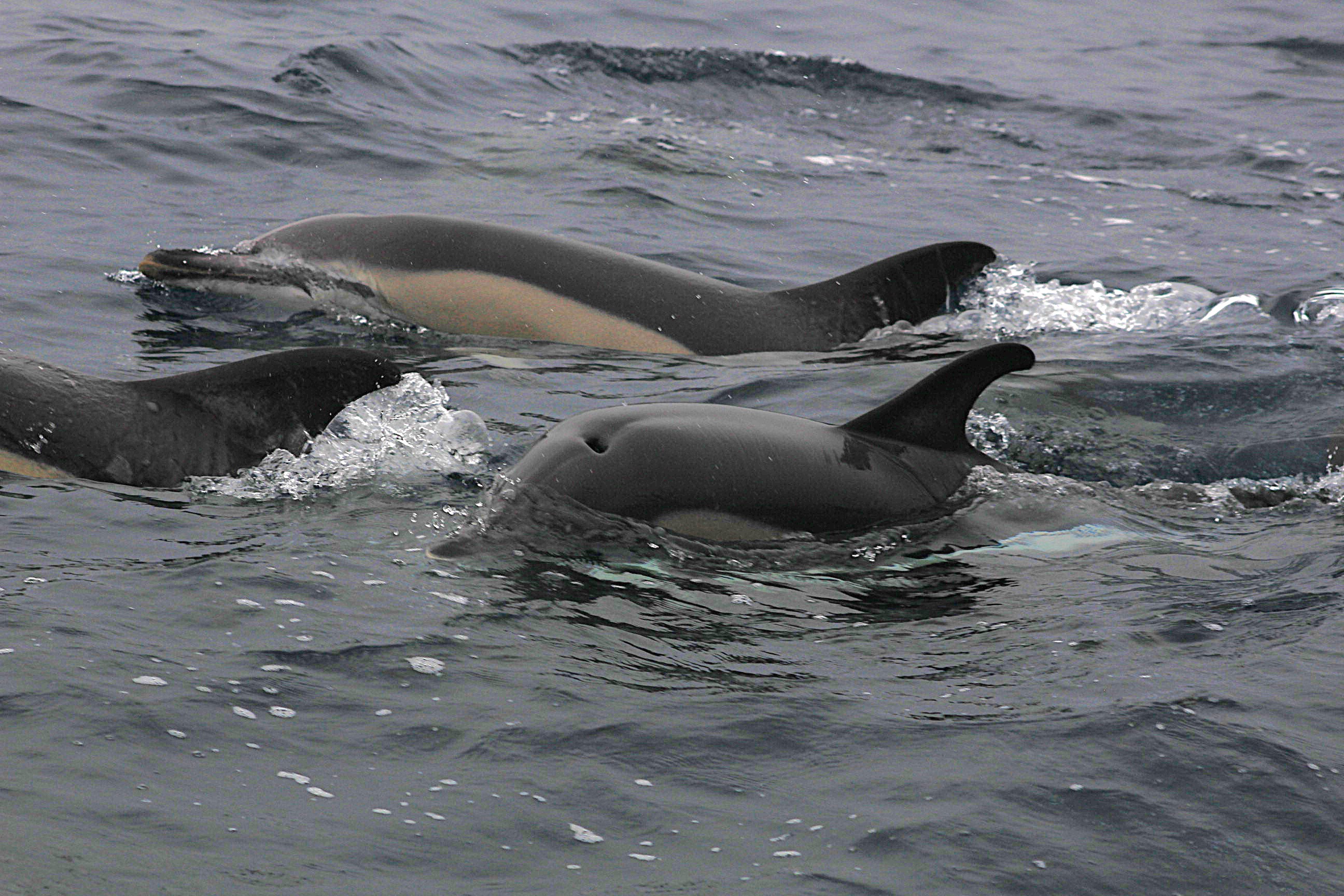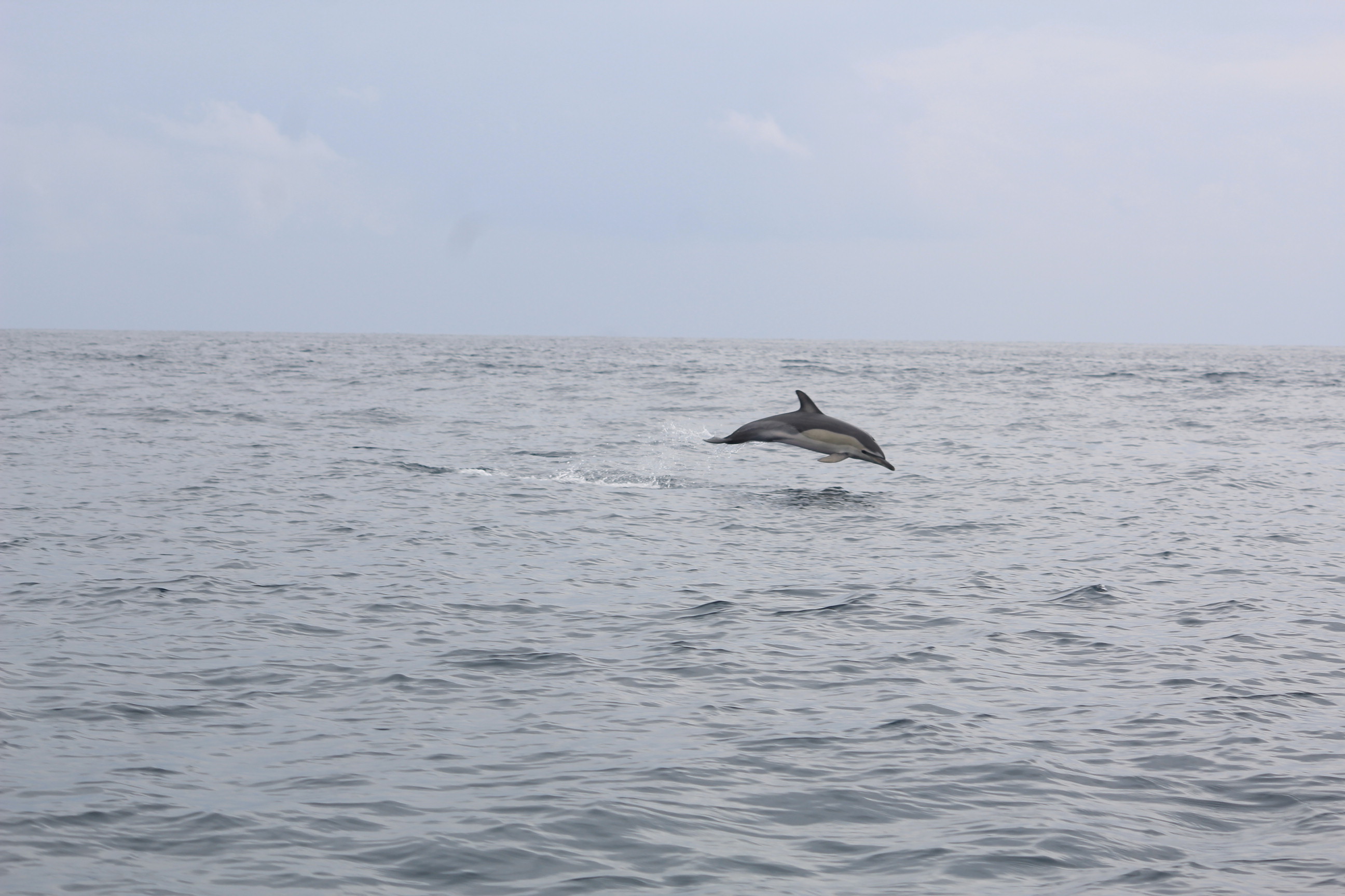 Notre groupe a eu la chance de voir dès le début un énorme pod de dauphins communs : certains chassent, certains se font des câlins, certains jouent avec le bateau… On en profite pendant bien 1h : que du bonheur !