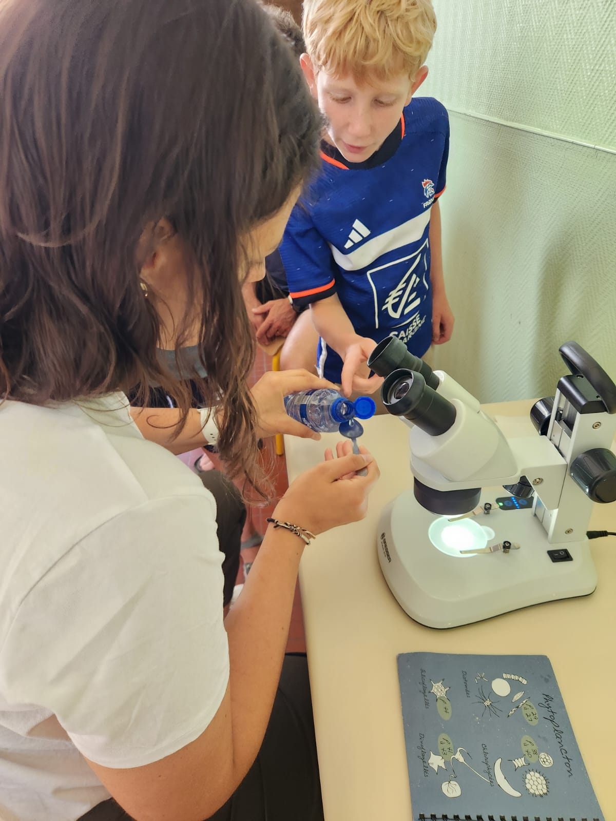 Pendant ce temps, au centre, c’était étude du plancton au microscope avec Léonie.