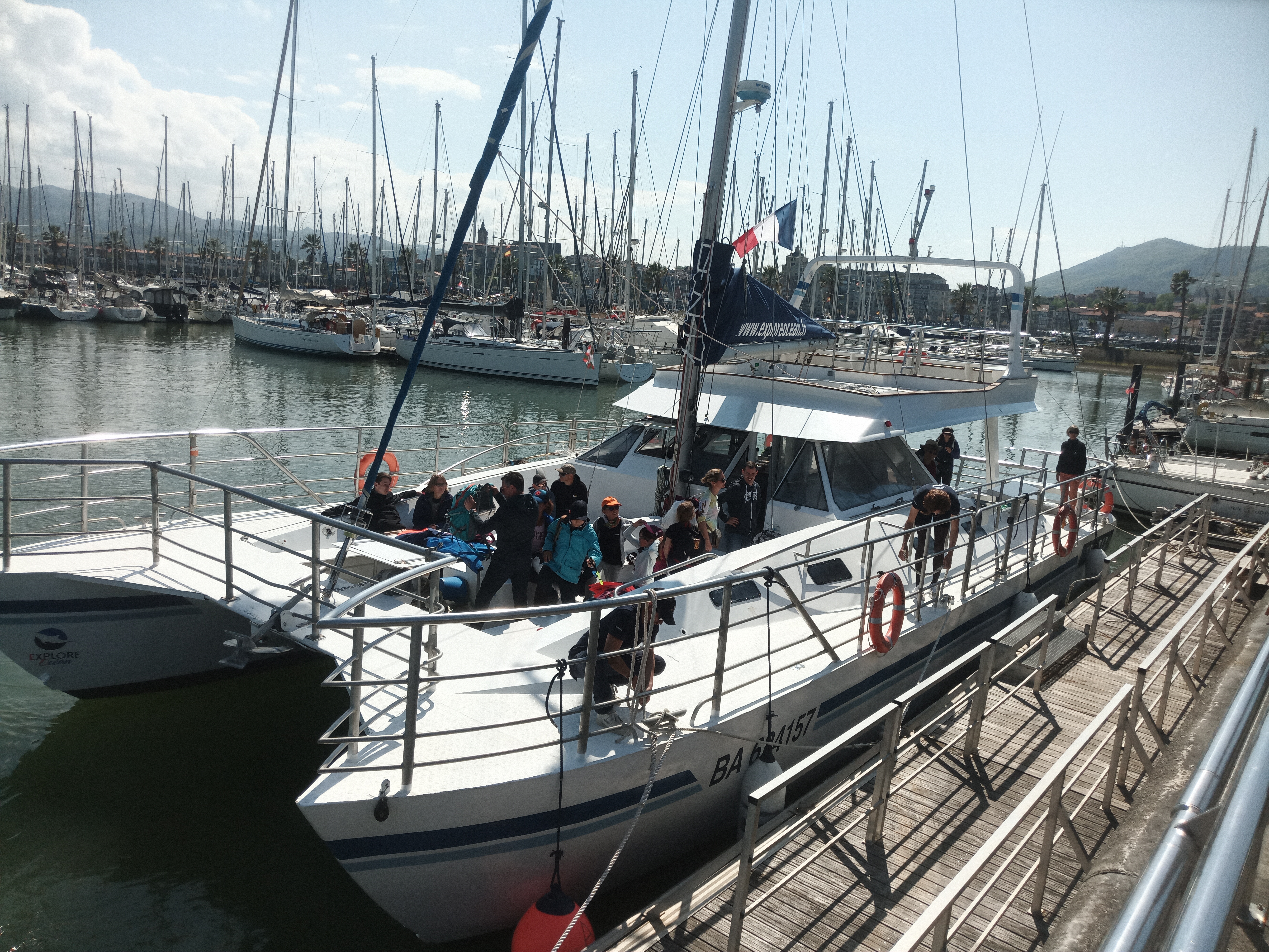 Aujourd’hui, le temps est couvert et nous sortons pour notre 3e sortie en mer, avec une légère pluie et un peu de vent. Nous embarquons à 8h30 à bord de l’Atalya et avons la chance d’avoir le bateau pour nous seuls. Nous avons pu observer 2 nouvelles espèces de dauphins : des dauphins communs et des dauphins bleus et blancs. Très curieux, ils sont venus tourner autour du catamaran. Nous avons également pu voir des globicéphales, des grands dauphins, un puffin des Baléares, 2 pingouins, et un poisson lune. Comme chaque sortie en mer, nous avons ramassé de nombreux macros déchets. Pendant notre déjeuner, de nombreux petits groupes de dauphins ont frolés le catamaran puis ont continués leur route. Retour au port vers 15h30 et préparation de la dernière sortie en mer.