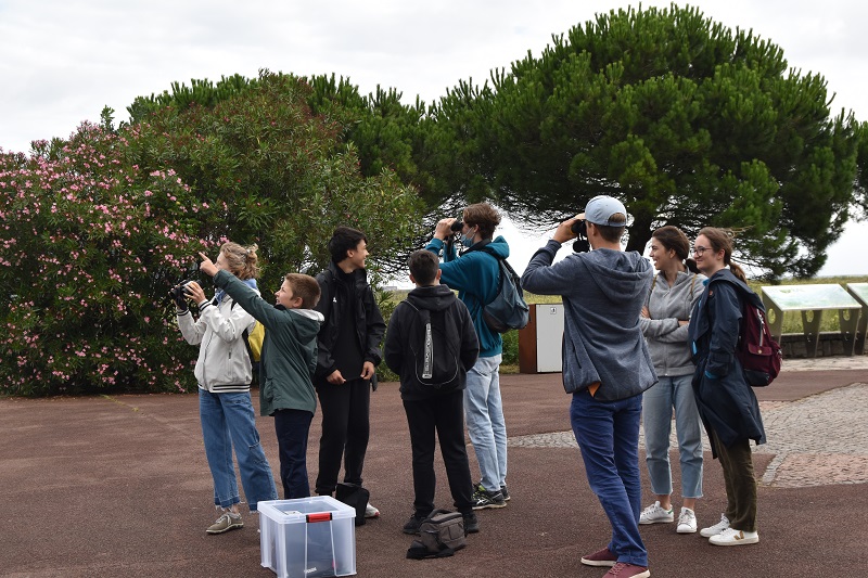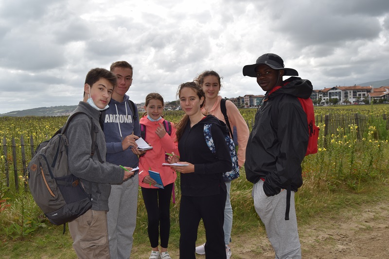 Ce matin, nous sommes partis à 9h au port d’Hendaye afin de nous préparer à nos prochaines sorties en mer. Pour cela, nous avons constitué deux groupes : pommes et poires, comme la compote ! Un groupe apprenait à se servir de jumelles et d’un appareil photo scientifiques afin de pouvoir identifier les différents animaux marins car les ailerons des dauphins constituent leur marque d’identité. L’autre groupe était chargé de cartographier l’entrée du port d’Hendaye afin de pouvoir le reconnaitre en rentrant de mer. Nous avons donc repéré les différentes balises et les éléments remarquables de la côte. L’après-midi, nous nous sommes baladés sur le sentier littoral sur lequel restent des vestiges de la chasse baleinière à Bidart.