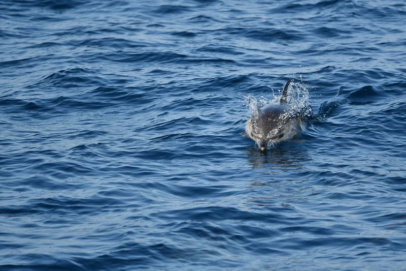 Plus tard dans l’après -midi, nous avons aperçu un groupe de dauphins bleus et blancs dont 1 qui est venu rejoindre les dauphins communs