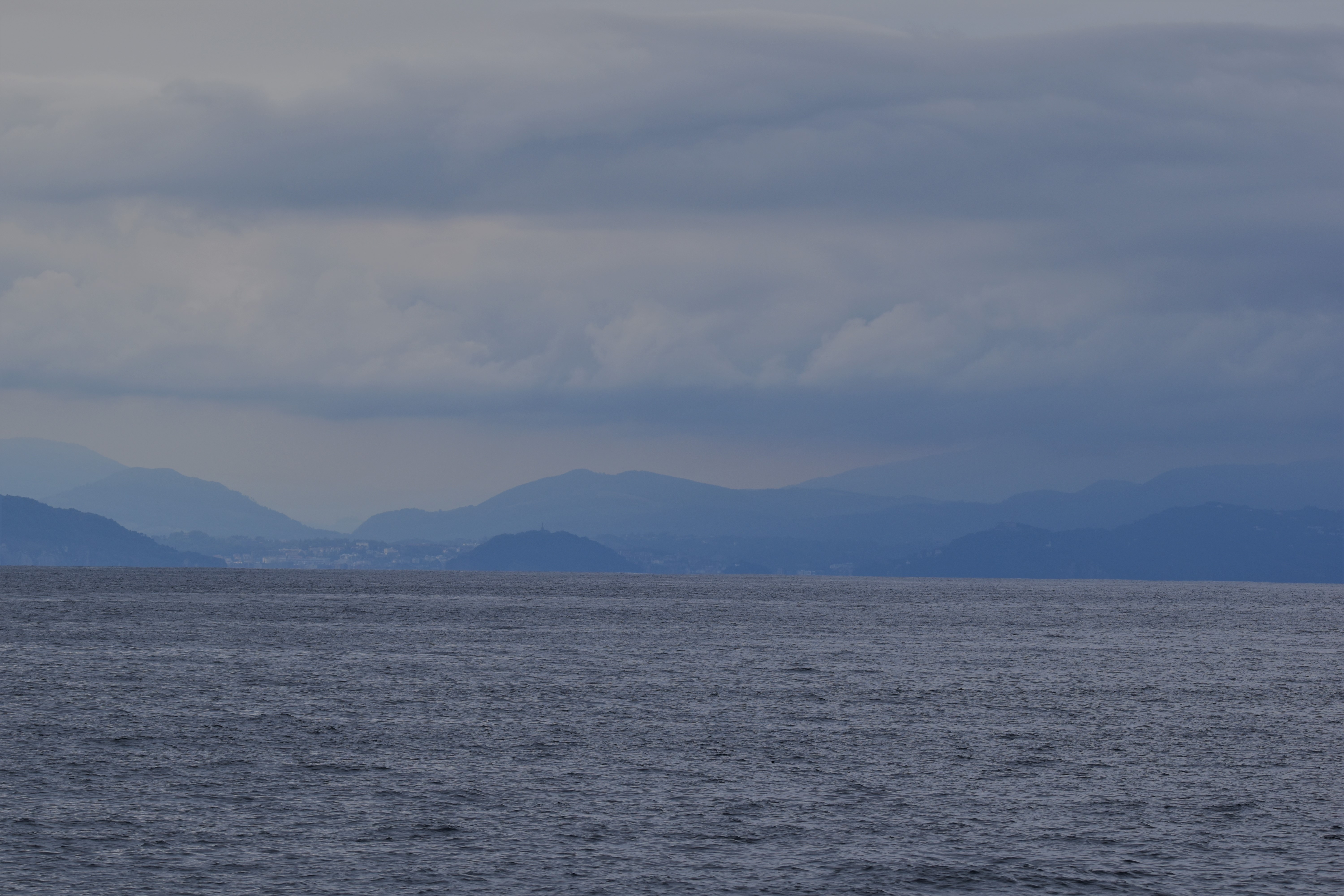 Cieux couleur anthracité, mer brillante, impressions d’embarquer sur une autre planète. Presque, en fait, la planète Mer si ce n’est qu’elle est devenue familière au fil des jours.