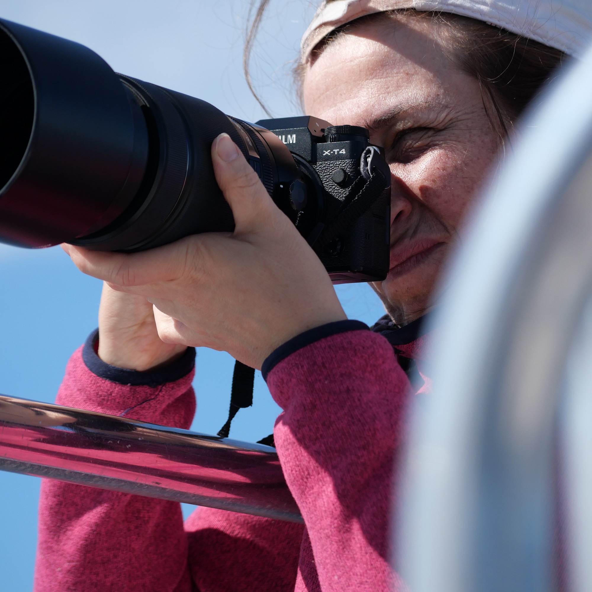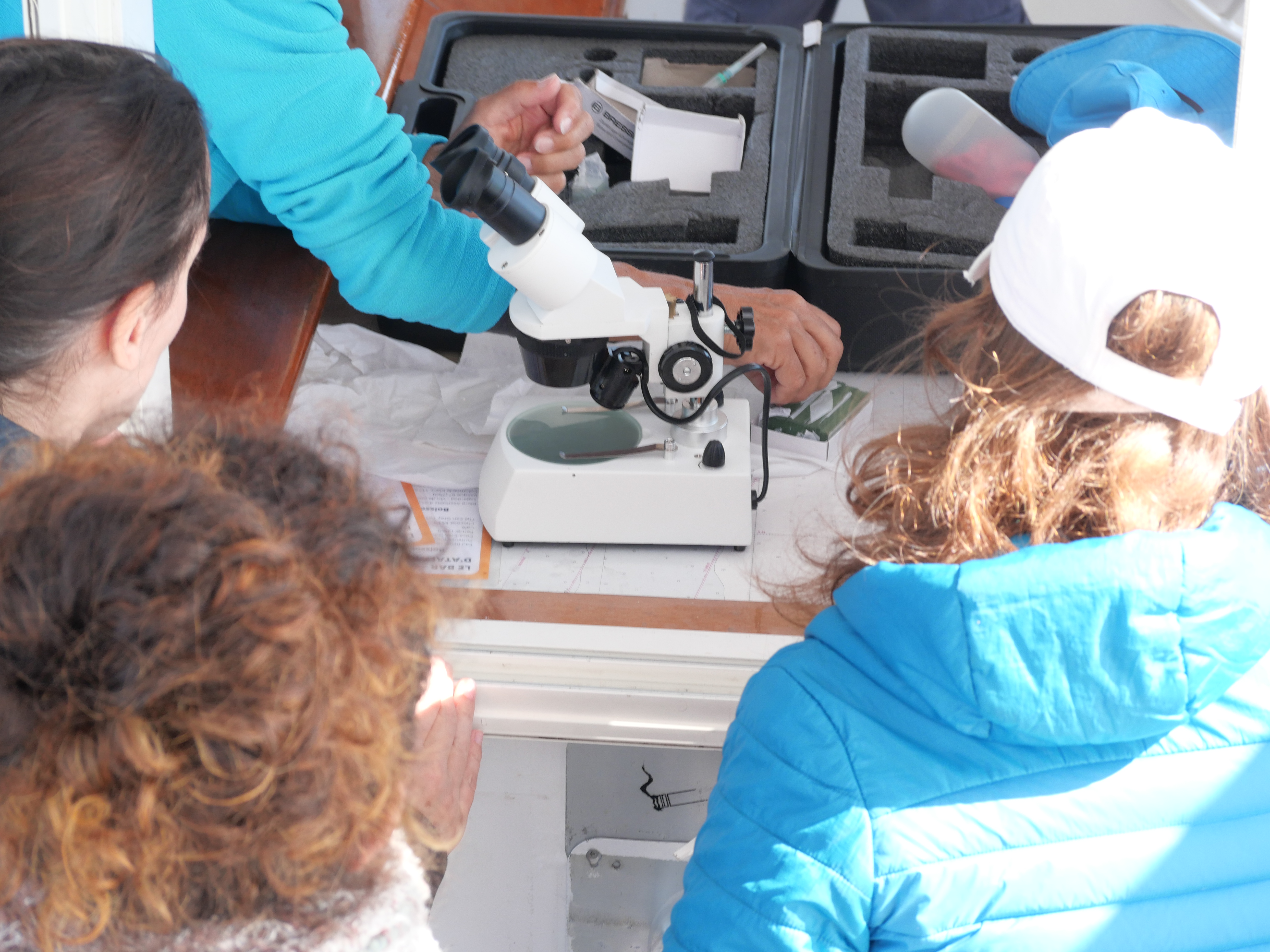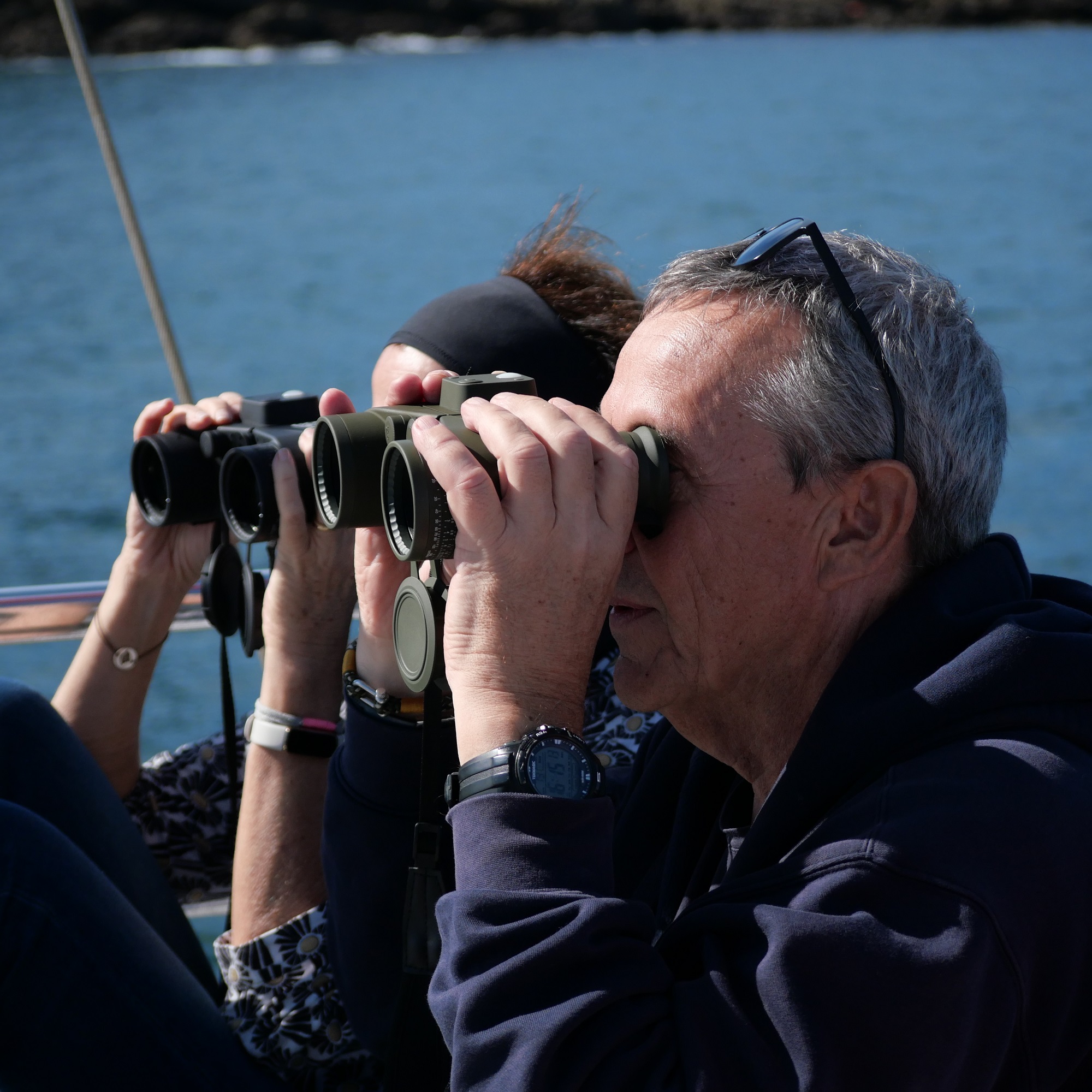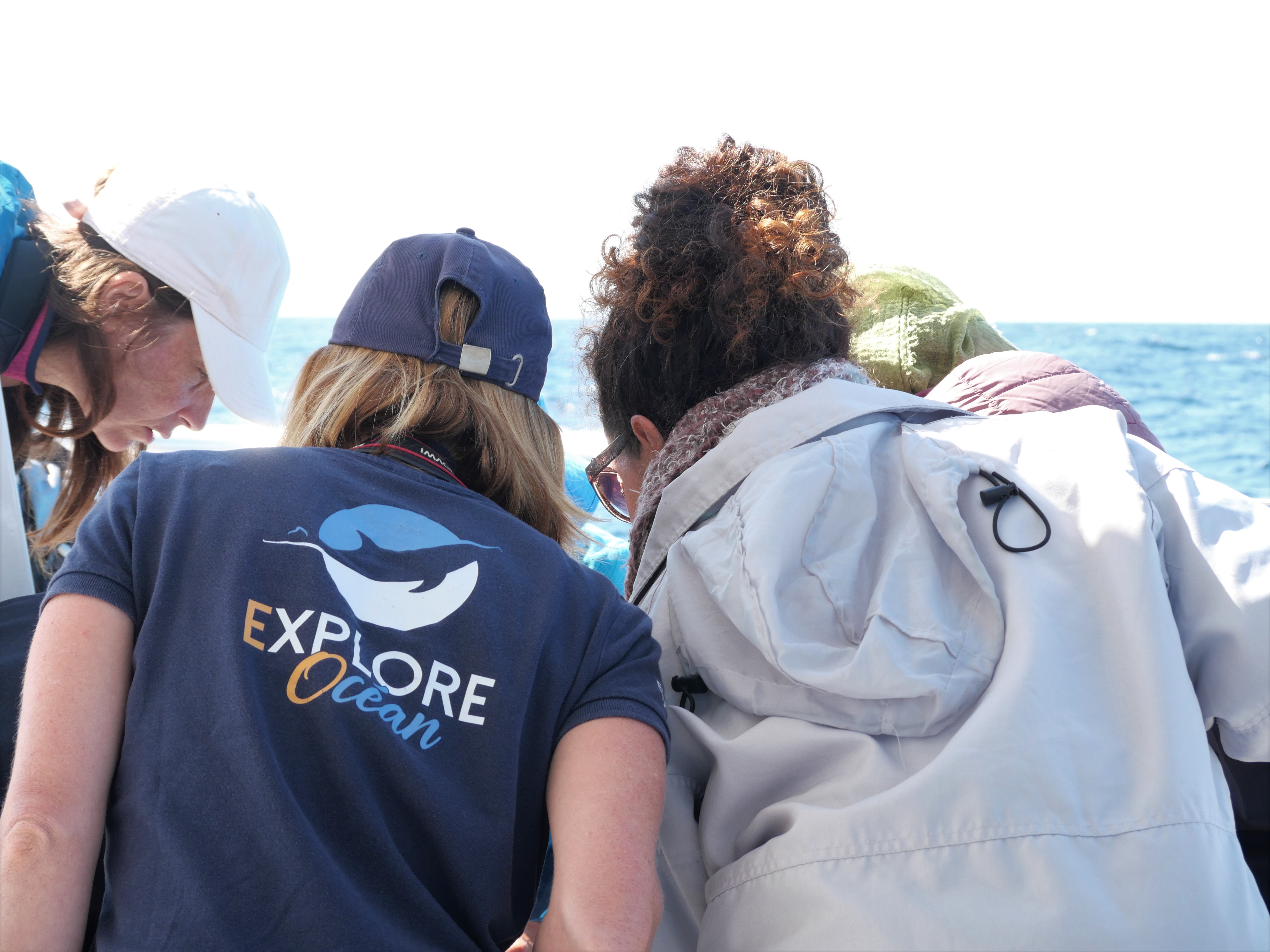 Des touristes se joignent à nous sur le bateau ainsi qu’une bénévole spécialiste de l’observation de cétacés.