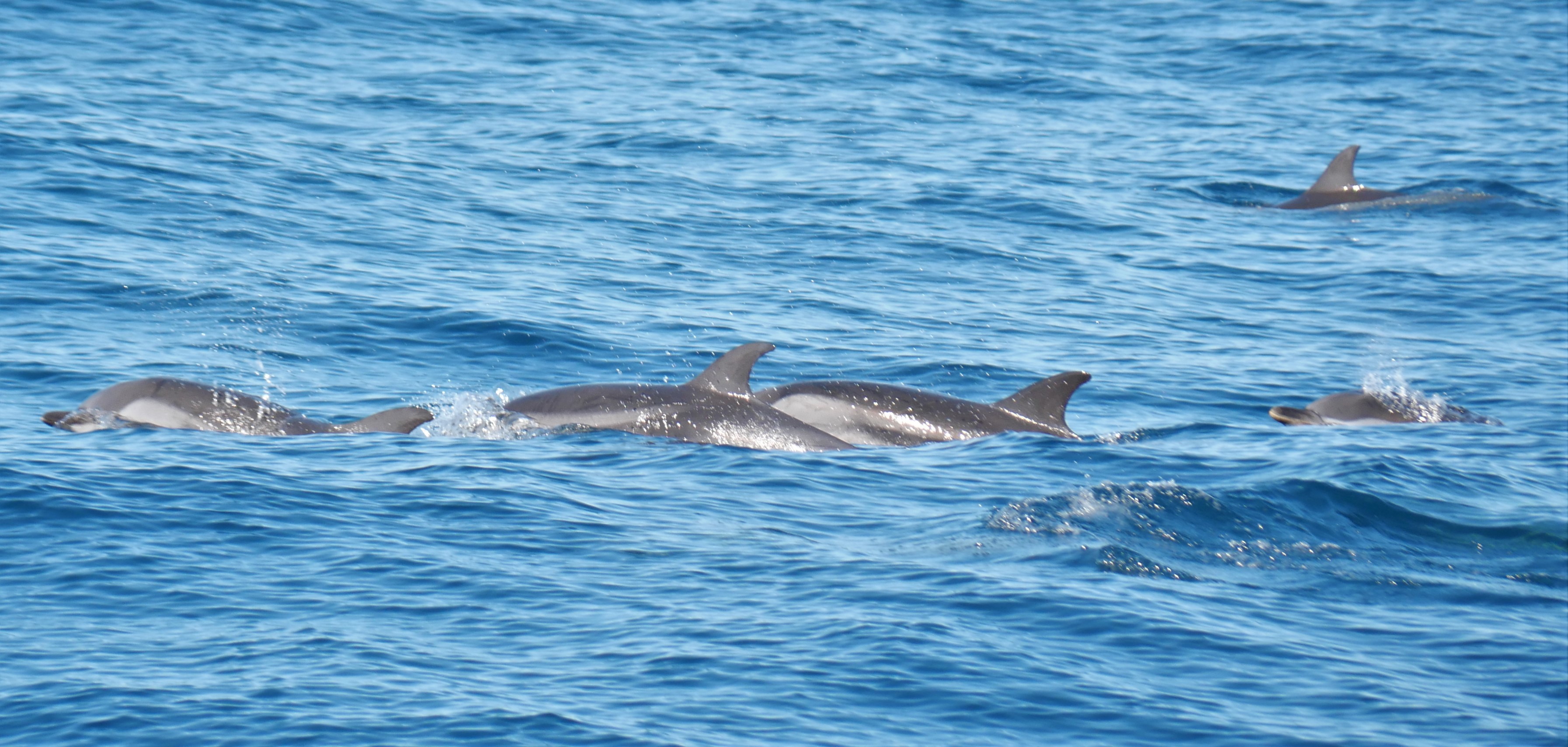 Grâce à cela nous pourrons observer dans l’après-midi, une troupe de dauphins en « déplacements ». Nous avons la joie de pouvoir les suivre, en parallèle de leur chemin, à bonne distance, sur un long moment avant qu’ils ne disparaissent pour poursuivre leur route sans nous.