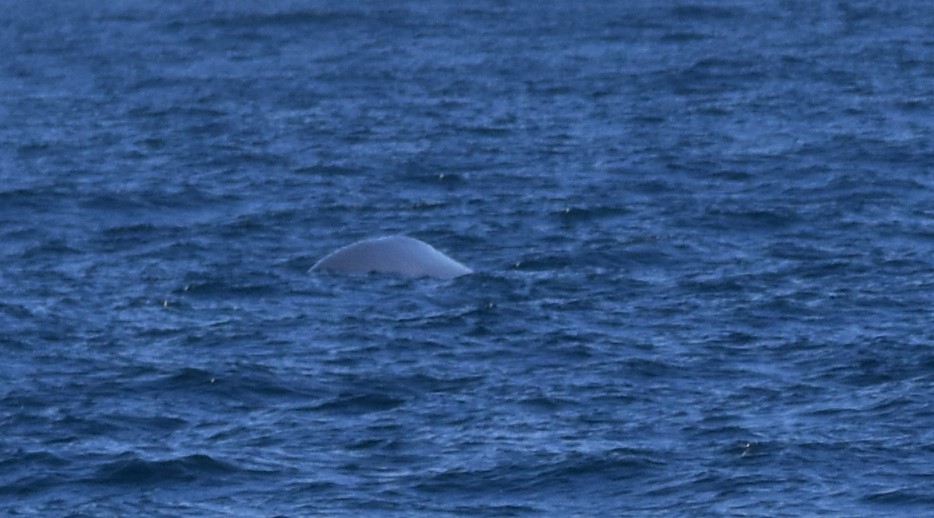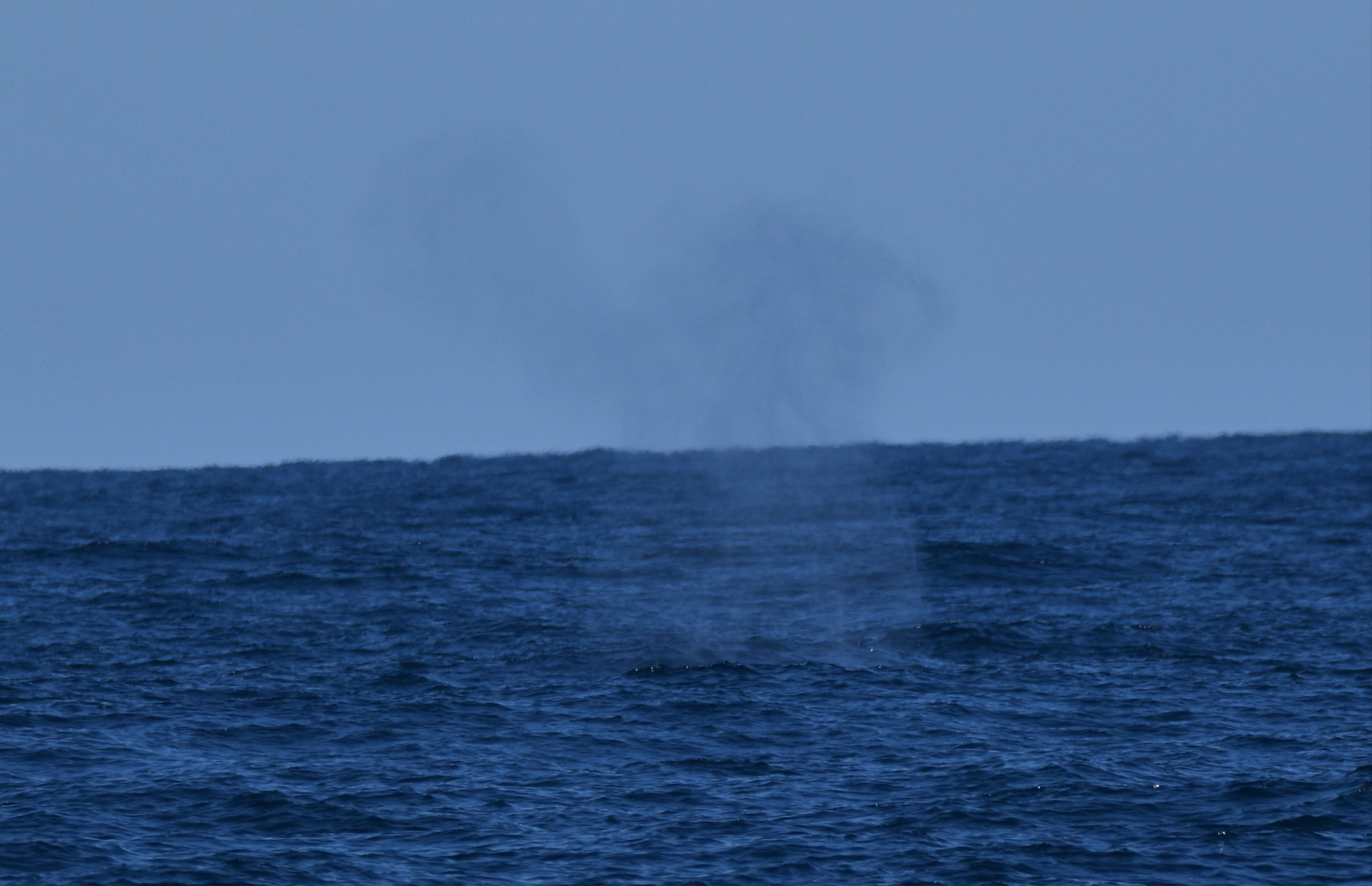 Nous observons plusieurs autres souffles interrompus de séquences de 10 à 12 mn d’attente. Une photo du dos de l’animal nous permet d’identifier un rorqual commun d’environ 18 m.