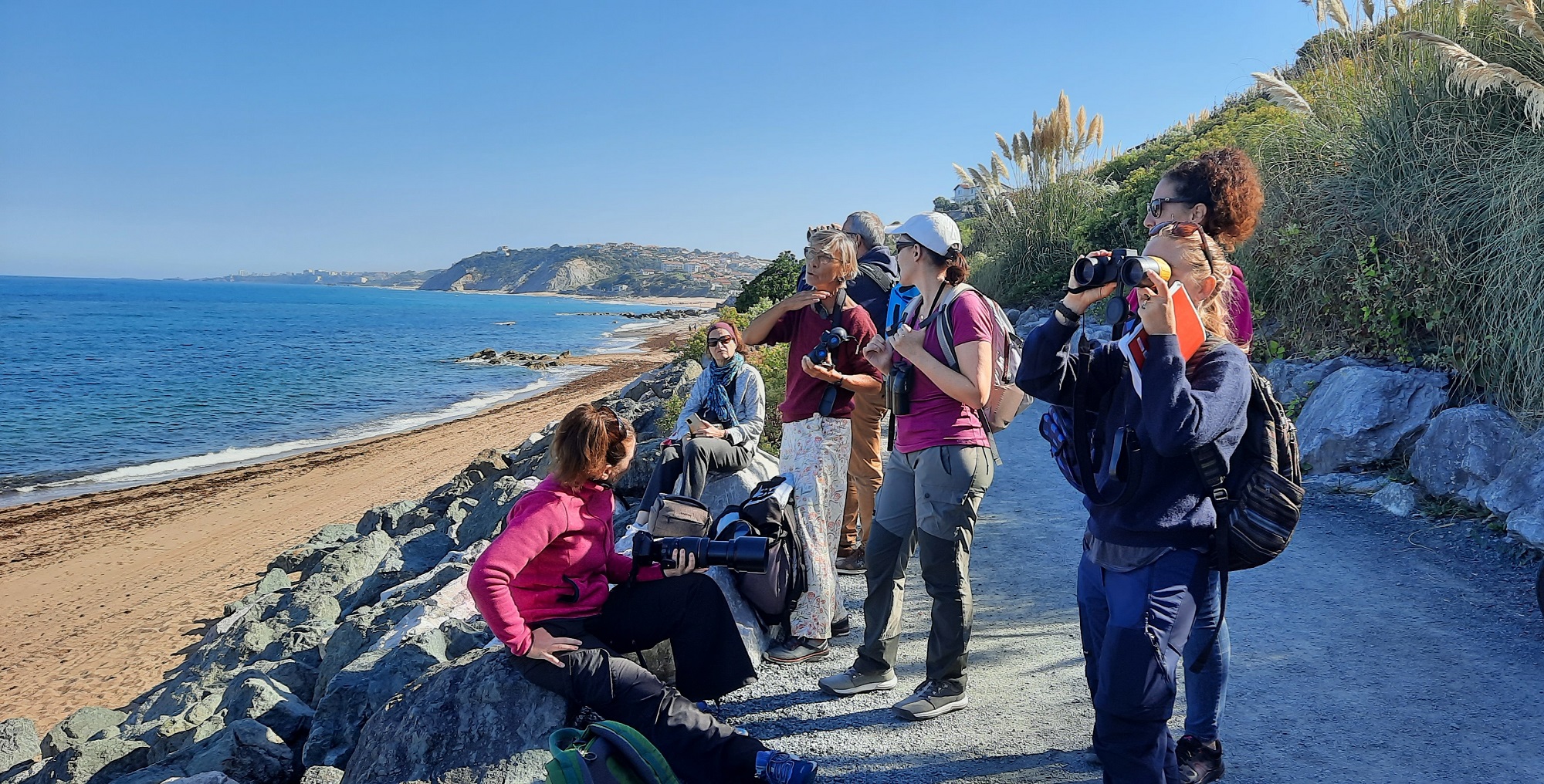 Certains d’entre nous ont approfondi leurs compétences photo, avec les spécificités de la prise de photo depuis un bateau. Nos avons observé, en particulier, des oiseaux marins (pas de cétacés vus aujourd’hui !!) : des goélands argentés, des cormorans, des puffins, etc., sur l’eau, dans les airs et regroupés sur les rochers de la côte espagnole. Une fois rentrés dans notre demeure basque, nous avons débriefé de la journée et fait le briefing pour les 2 journées suivantes.