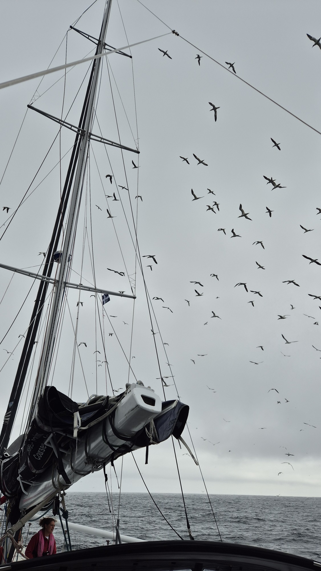 Entouré d’oiseaux tout autour du bateau nous accompagnant en sortant de notre spot pour la nuit, nous avons mis les voiles pour continuer à remonter vers le nord.