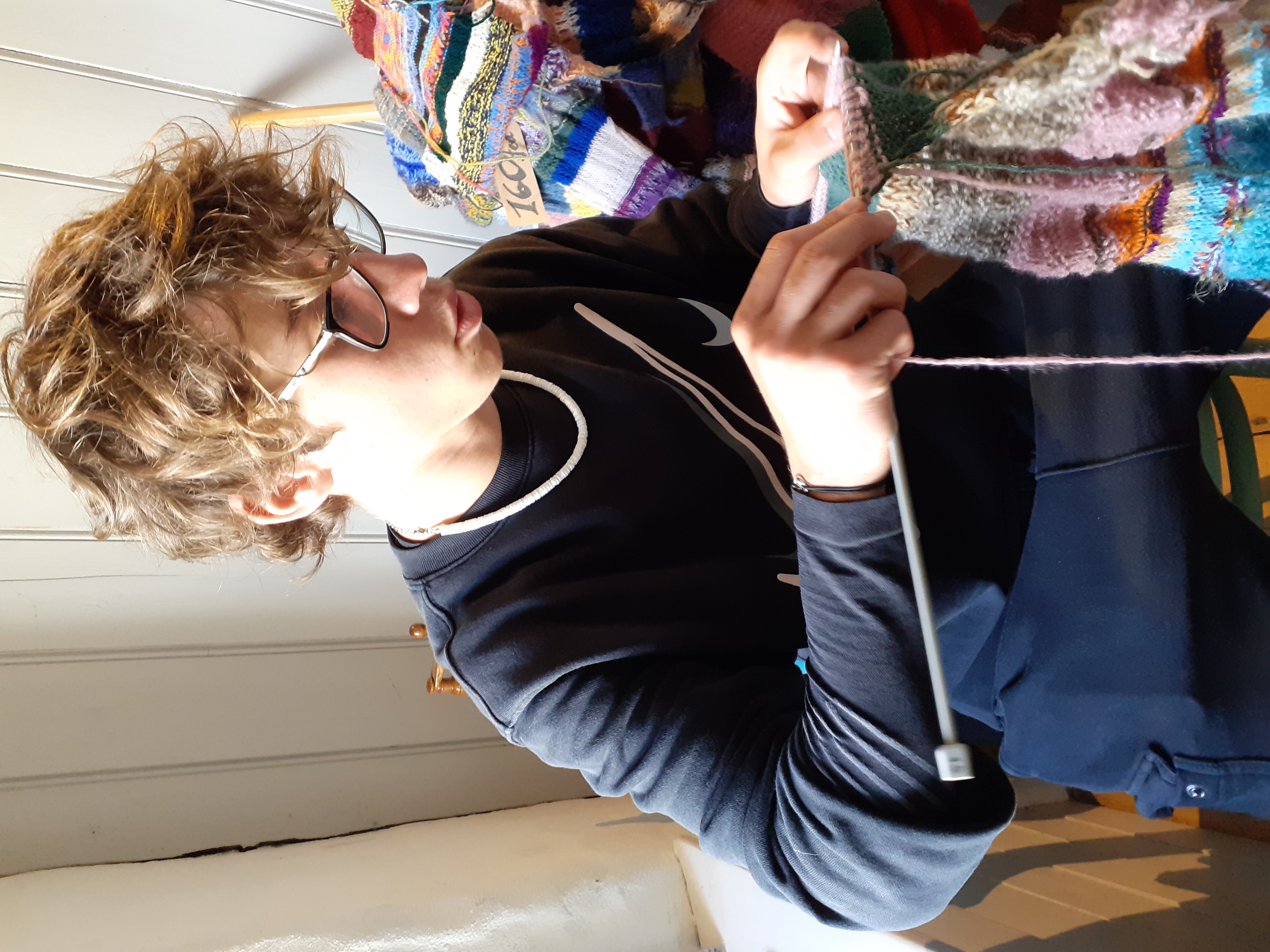 Kian, Kerwann et Anne se rendent au musée du tricot, passage culturel indispensable. Deux mailles pour Kian, 1 rang pour Kerwann ! Une montée en compétence au moins sur un point mousse (ah ! ah !).