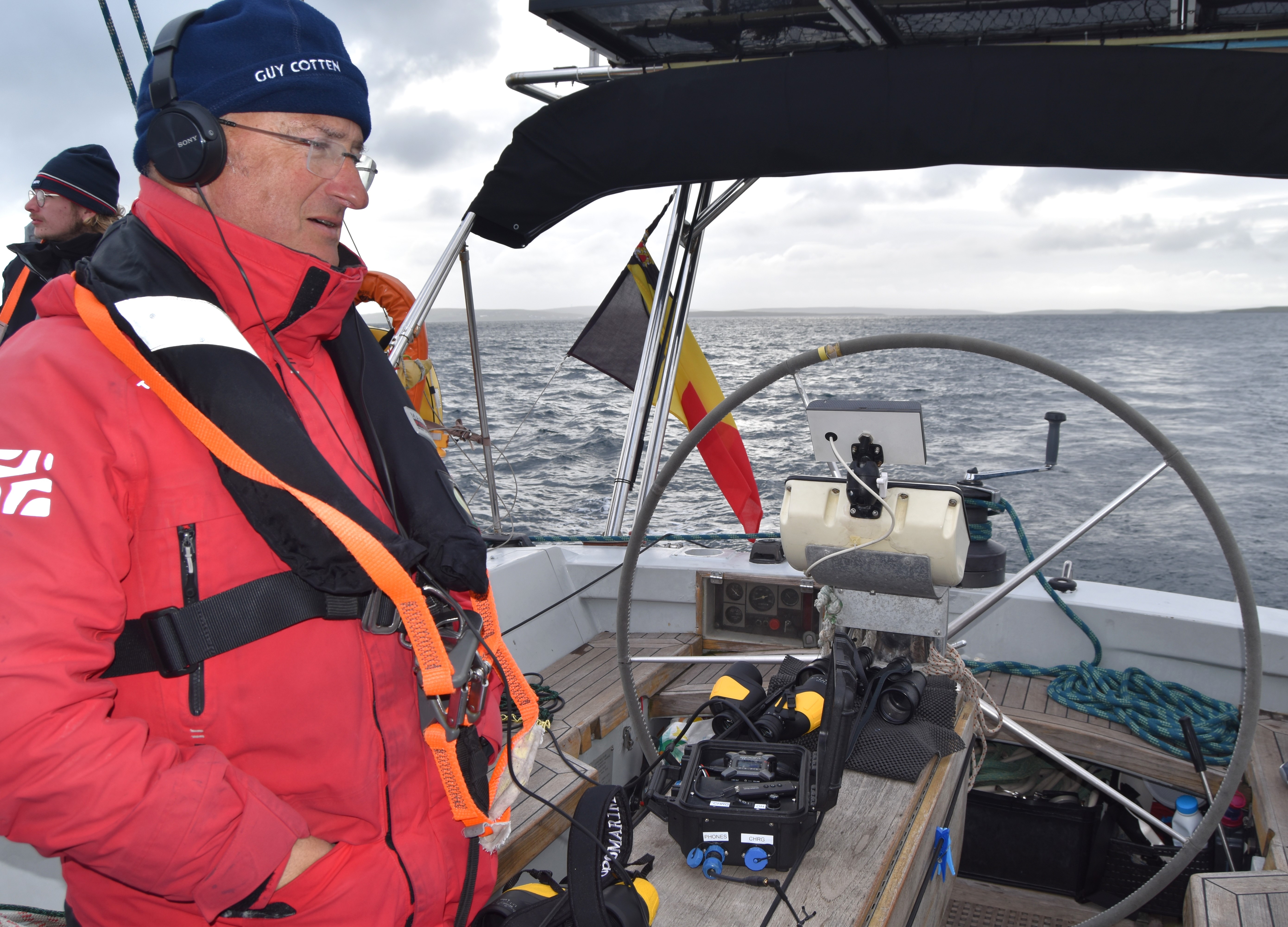 La semaine aura été ponctuée de bonne humeur, de rires, de blagues plus ou moins comprises, de bons moments autour de bons repas, d’apprentissages scientifiques et nautiques. Une aventure humaine, digne d’une traque à la Moby Dick, infructueuse en ce qui concerne les orques, mais comme le dit l’océanographe Anne Littaye : « une absence de résultats est un résultat en soi » !