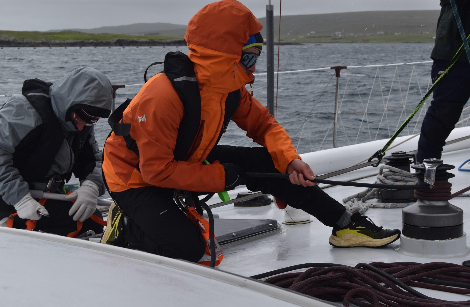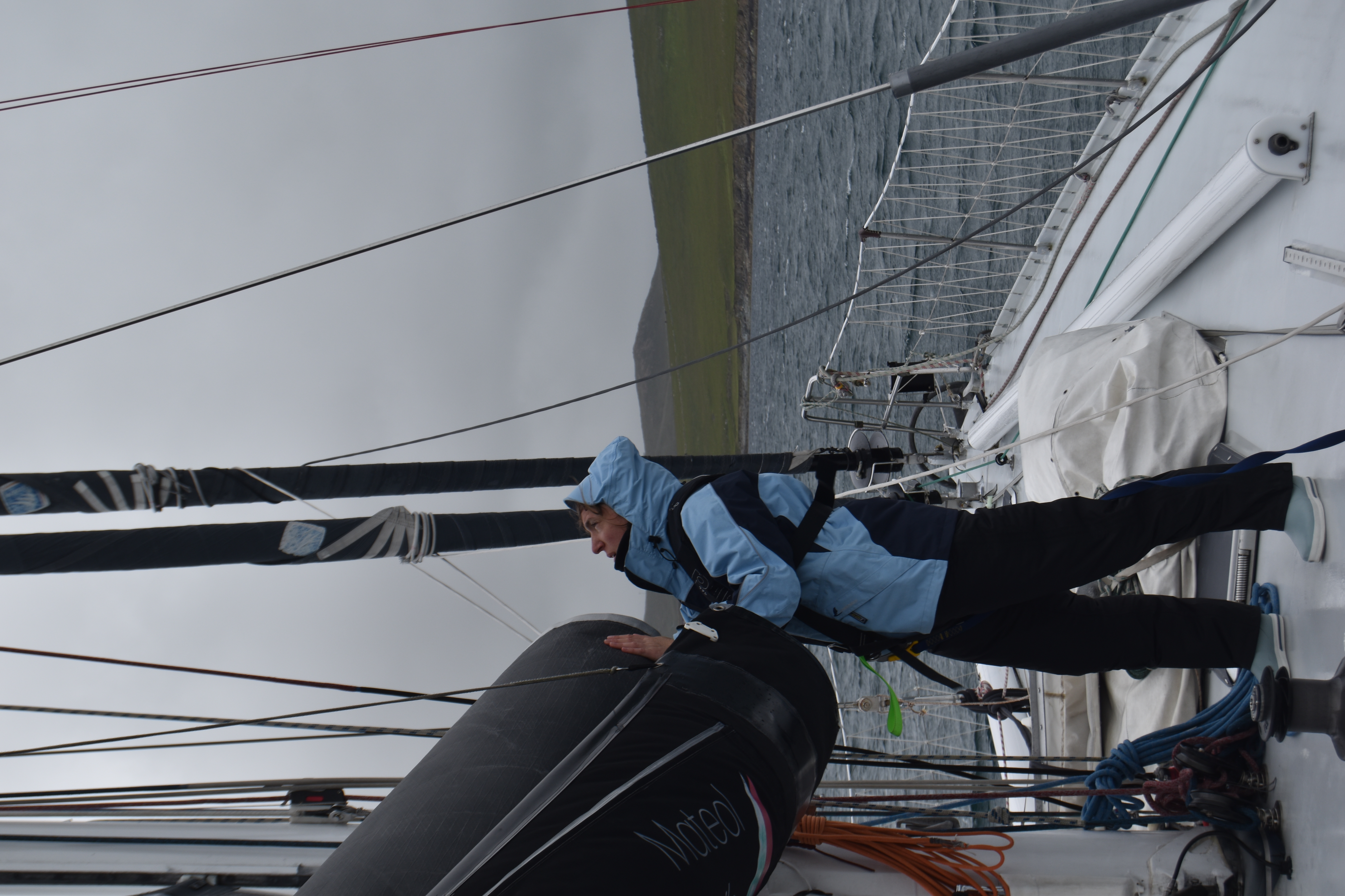 Sixième et dernier jour du séjour, nous commençons cette journée alourdis de fatigue et d’un copieux petit-déjeuner anglais. La grande voile est plus lourde que d’habitude !