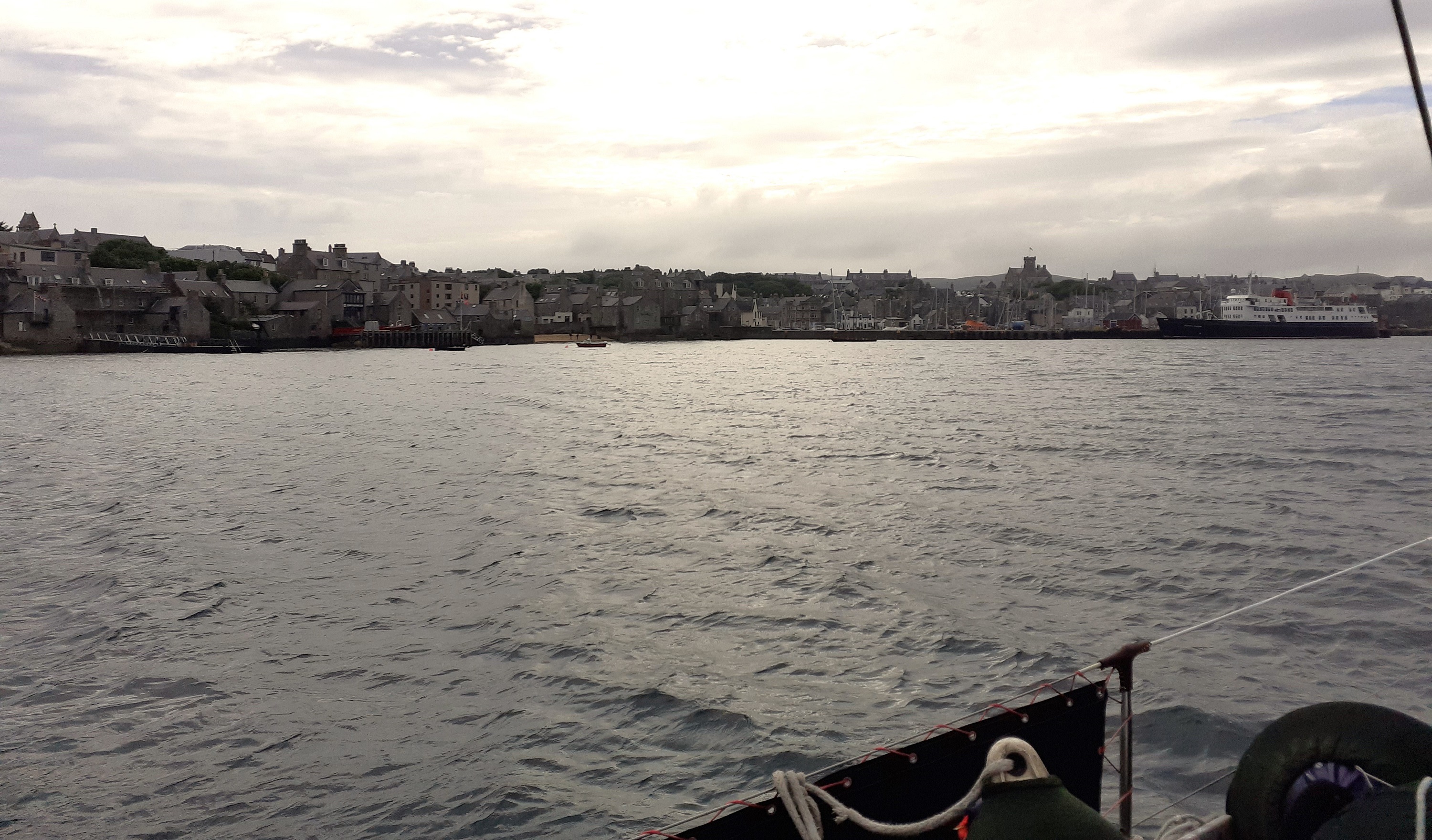 Lerwick s’est peuplé après notre départ, nous devons nous amarrer dans l’entrée du port, la manœuvre est délicate et l’emplacement pas idéal mais ça ira pour la soirée. Les douches chaudes du yacht club sont bienvenues, et après un dernier délicieux repas tous ensemble, un petit groupe de motivés va boire une bière au pub.