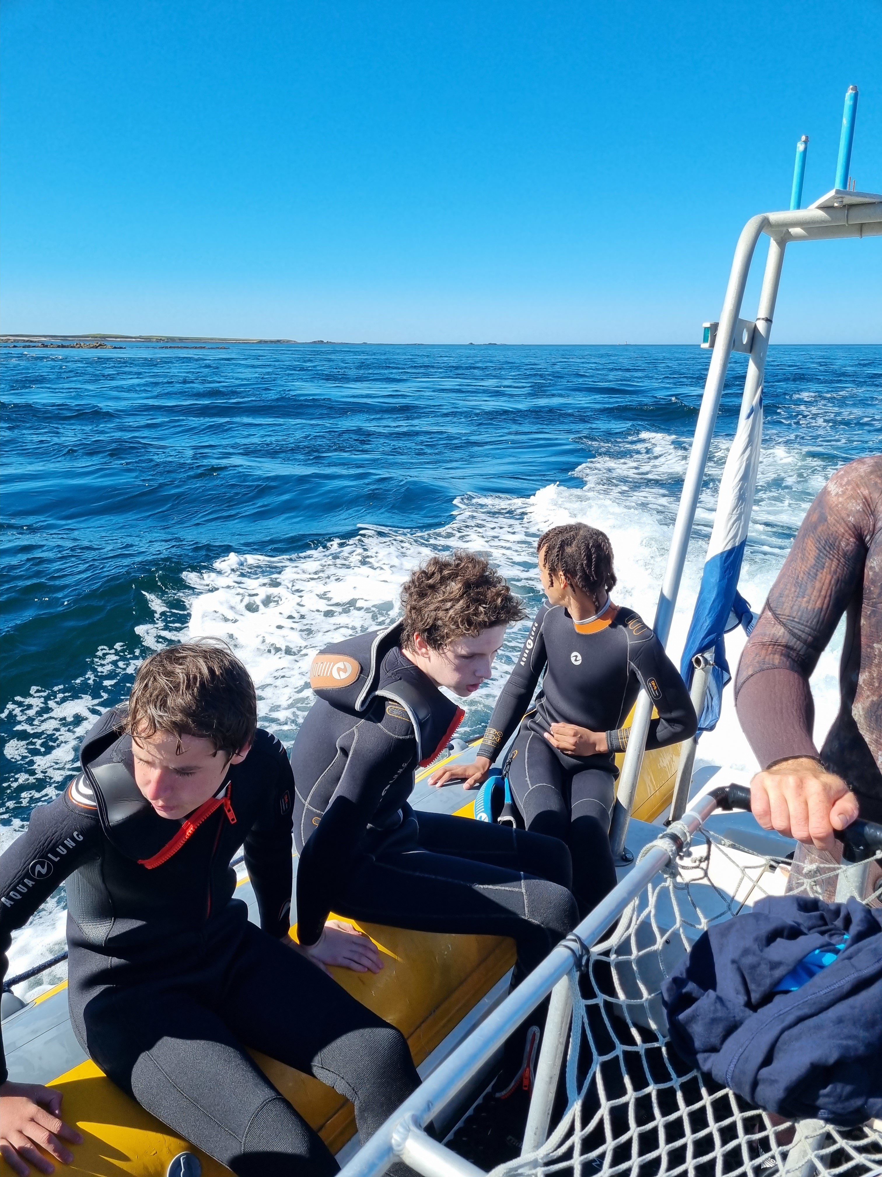 Comme prévu aujourd’hui, nous sommes parties faire du PMT (Palme Masque et Tuba) au large de l’archipel de Molène.