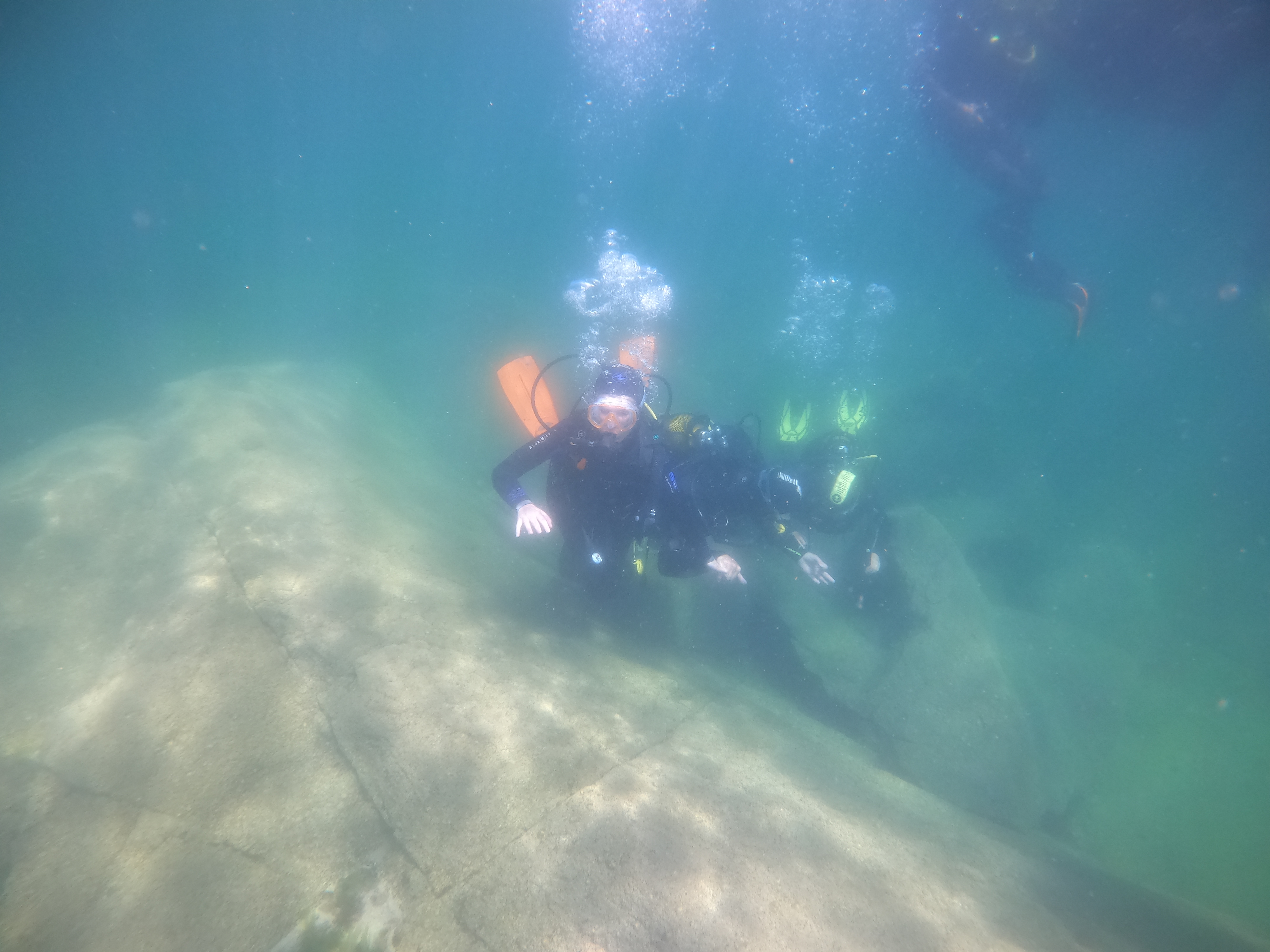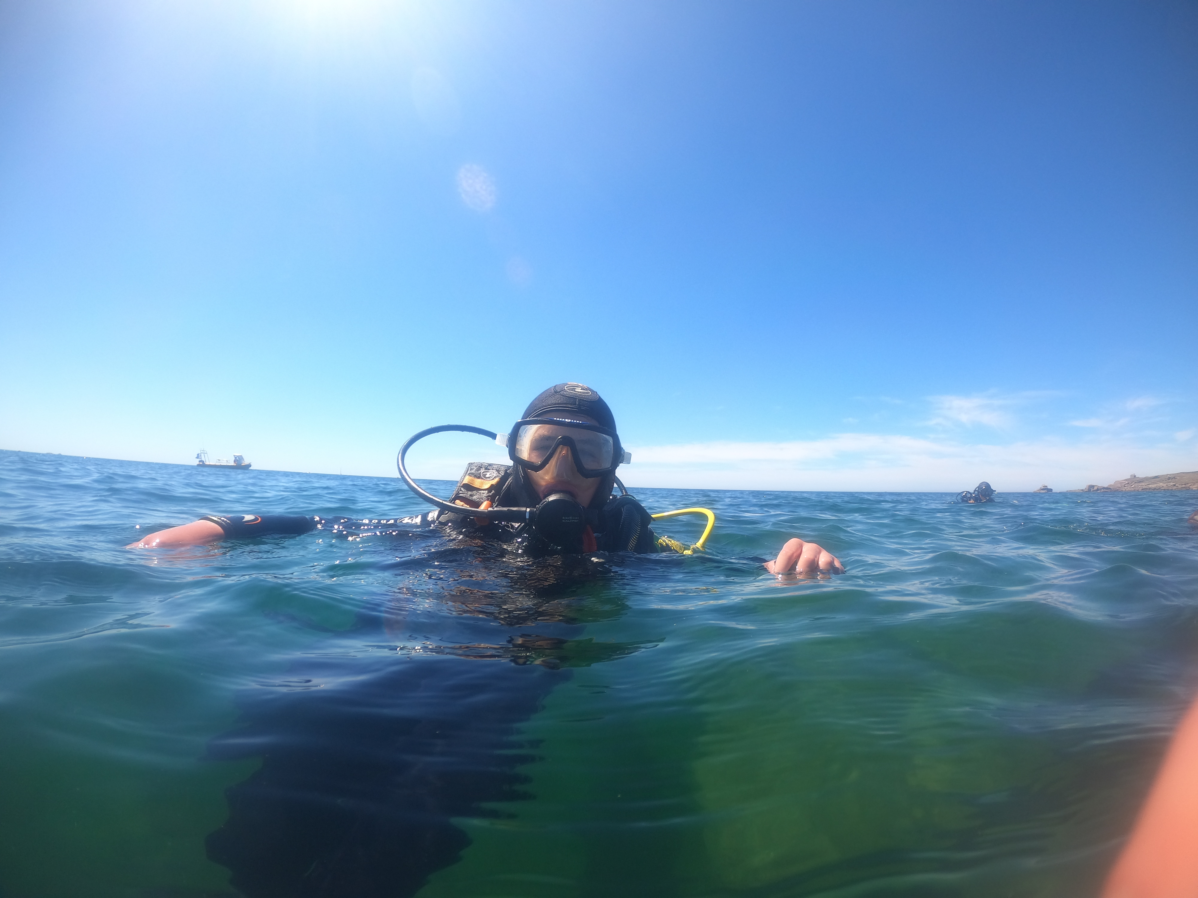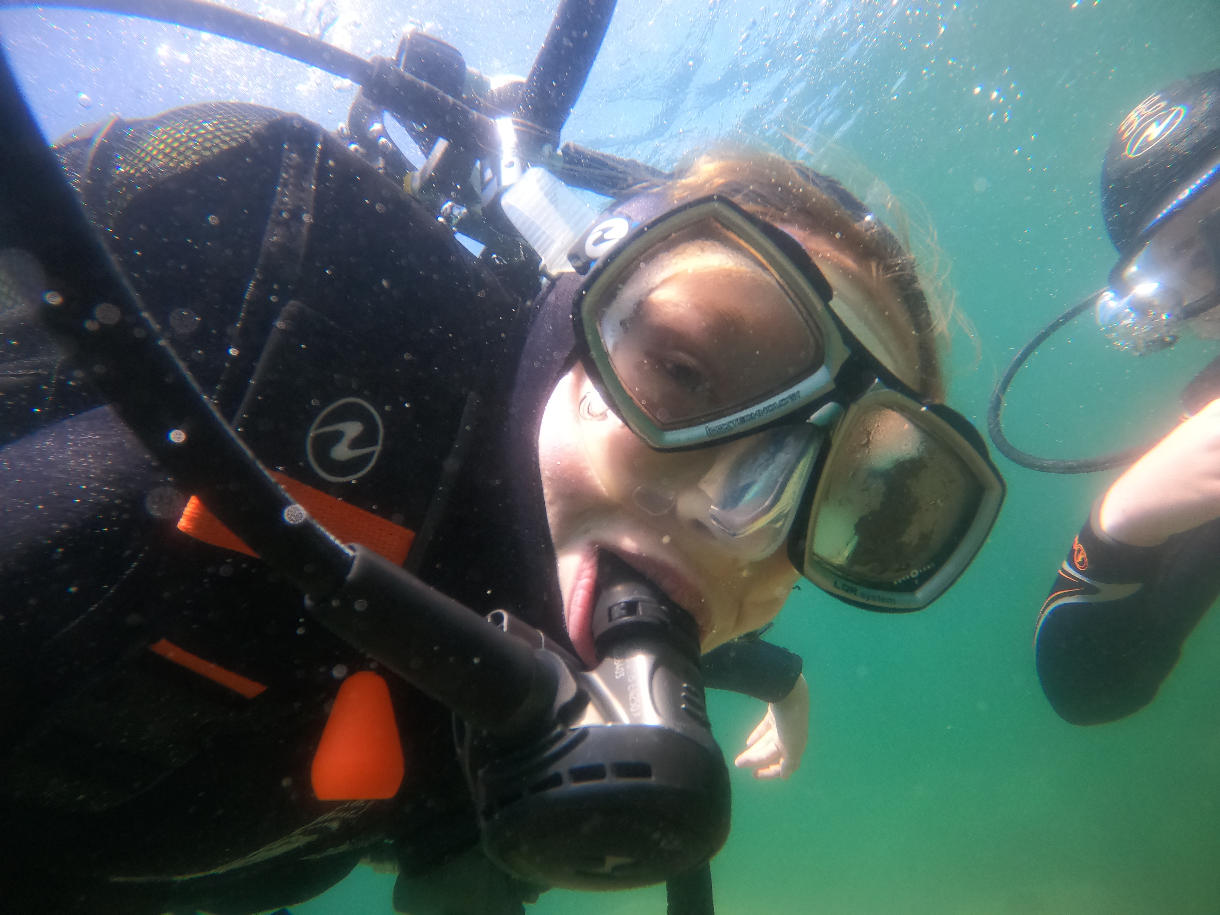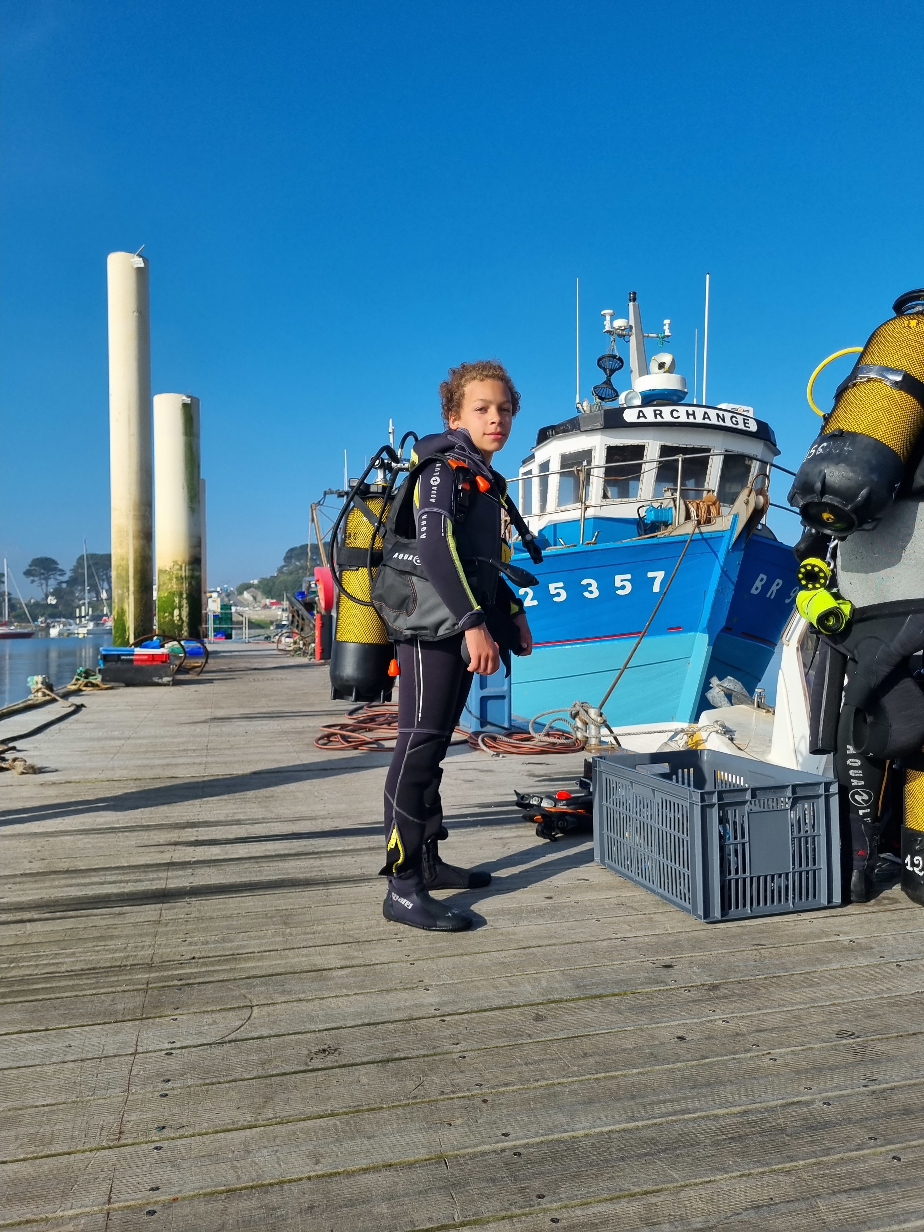 Après une douche bien méritée et un repas léger c’est repartie pour trois des participants, Milaya, Noé et Victoria. Ils ont passés l’après-midi dans l’eau pour se familiariser avec le milieu et on donc fait leur baptême de plongée !