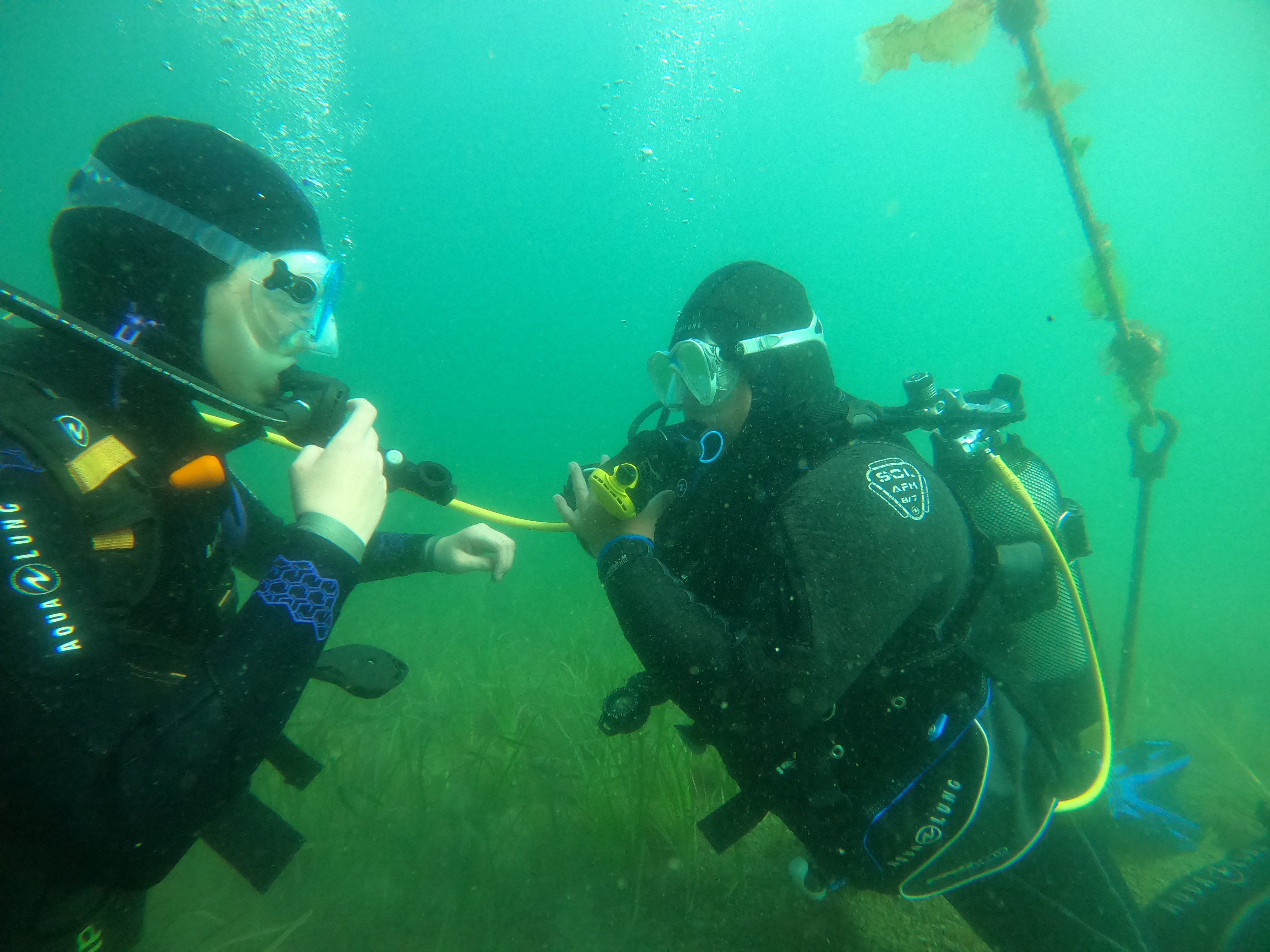 En parallèle de ces premières observations/découvertes, des exercices techniques ont été réalisés afin de préparer le baptême de plongée.