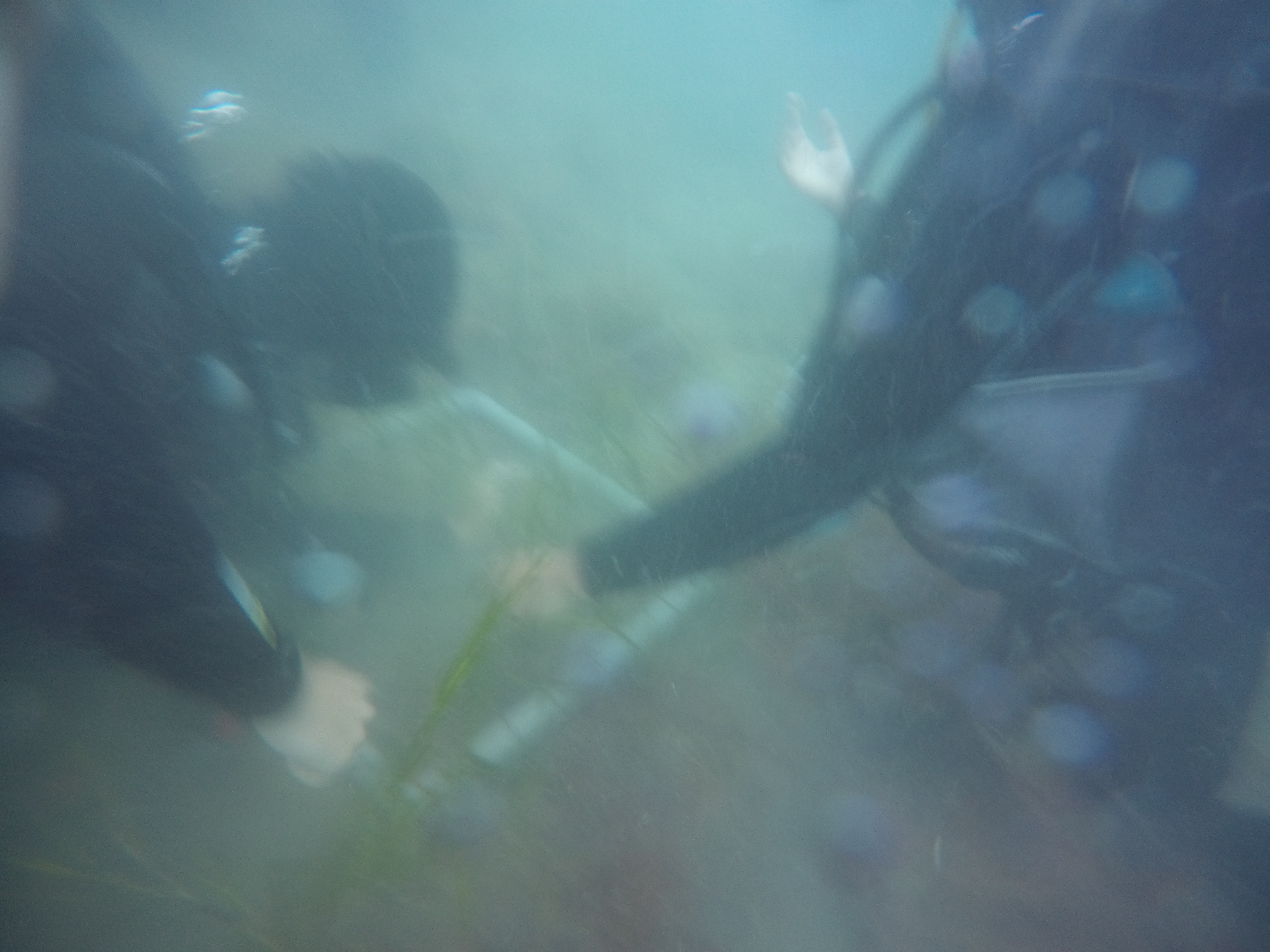 Le rôle de chaque plongeur était pré défini au sein de la palanquée.Sous l’eau, 1 ou 2 plongeurs comptaient les pieds et les limbes des zostères dans les quadras (carré de50cm) posés au sol