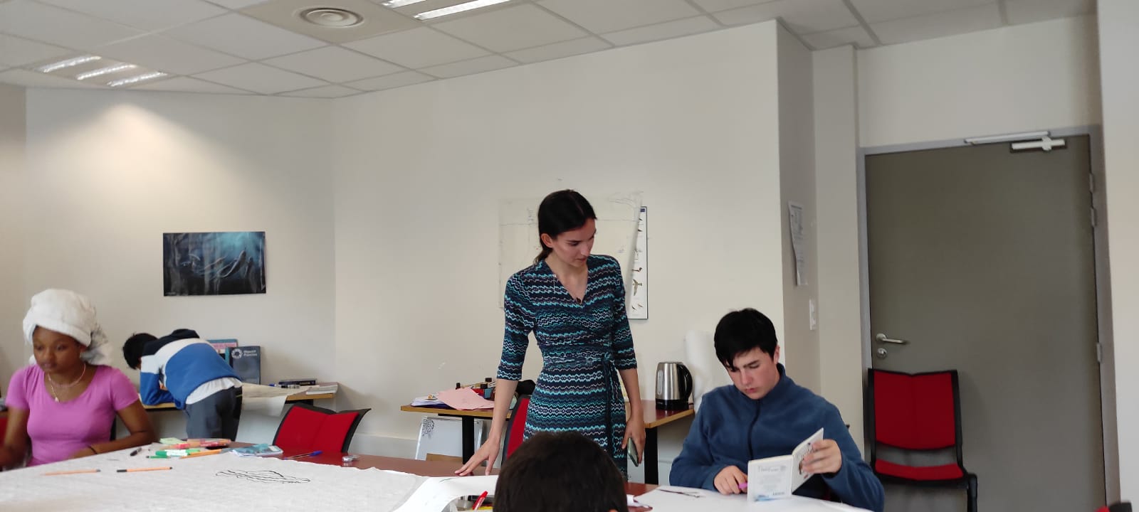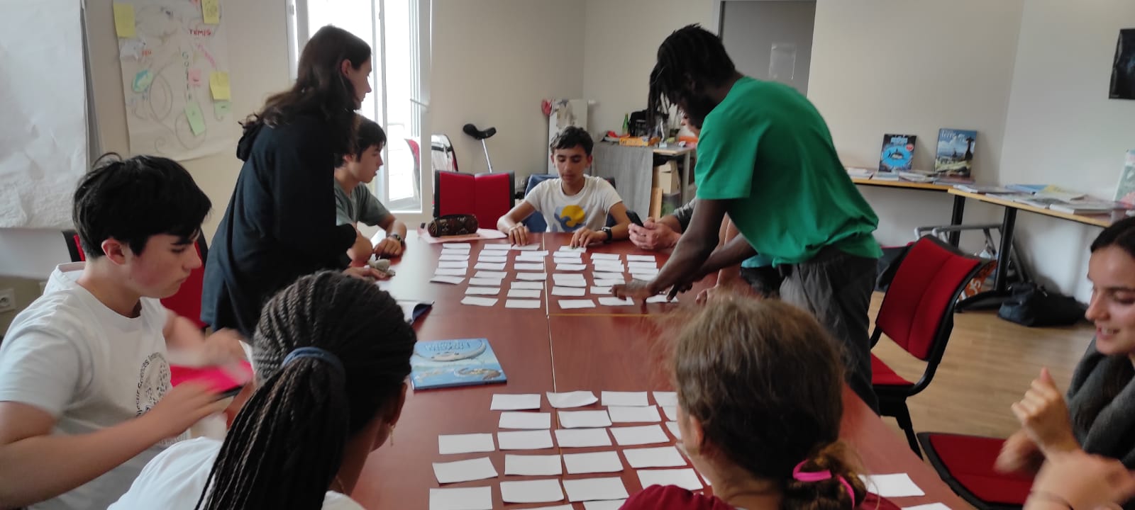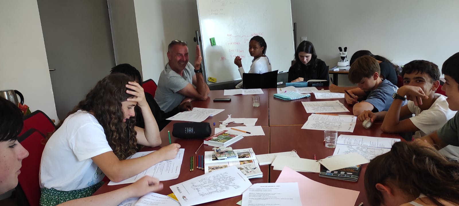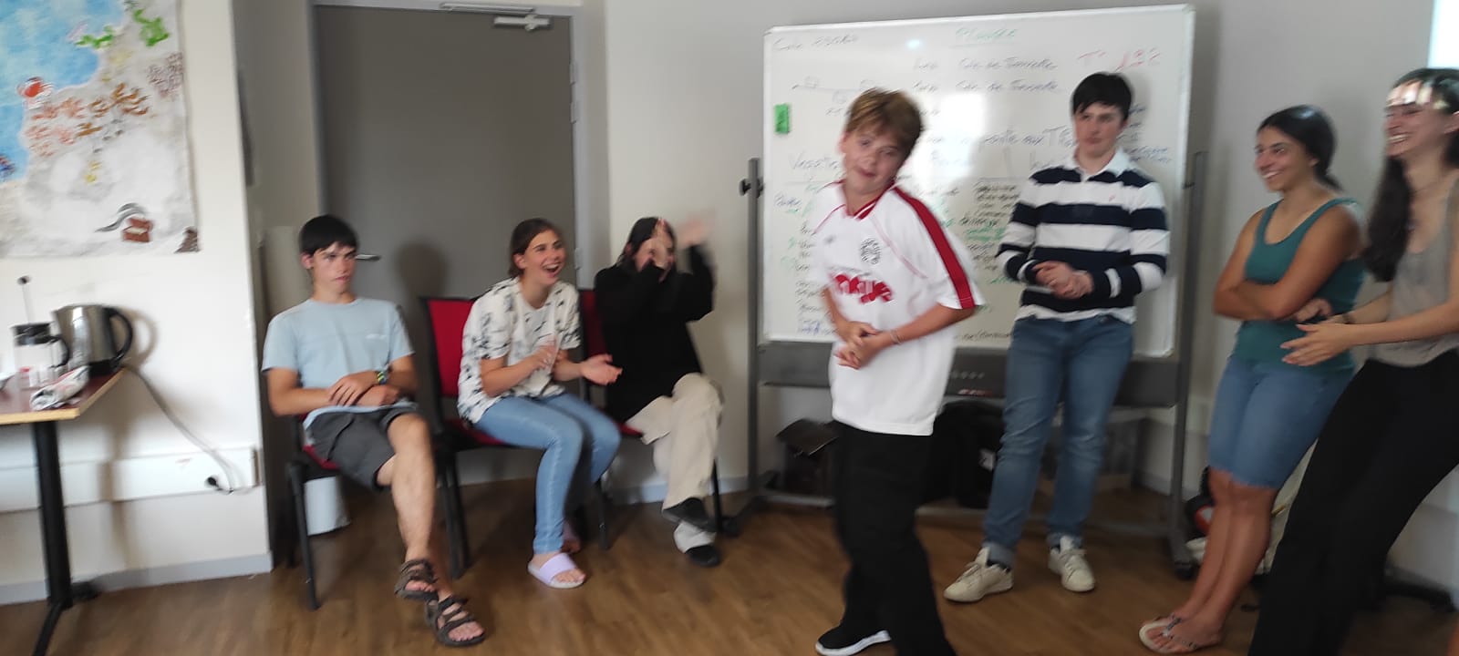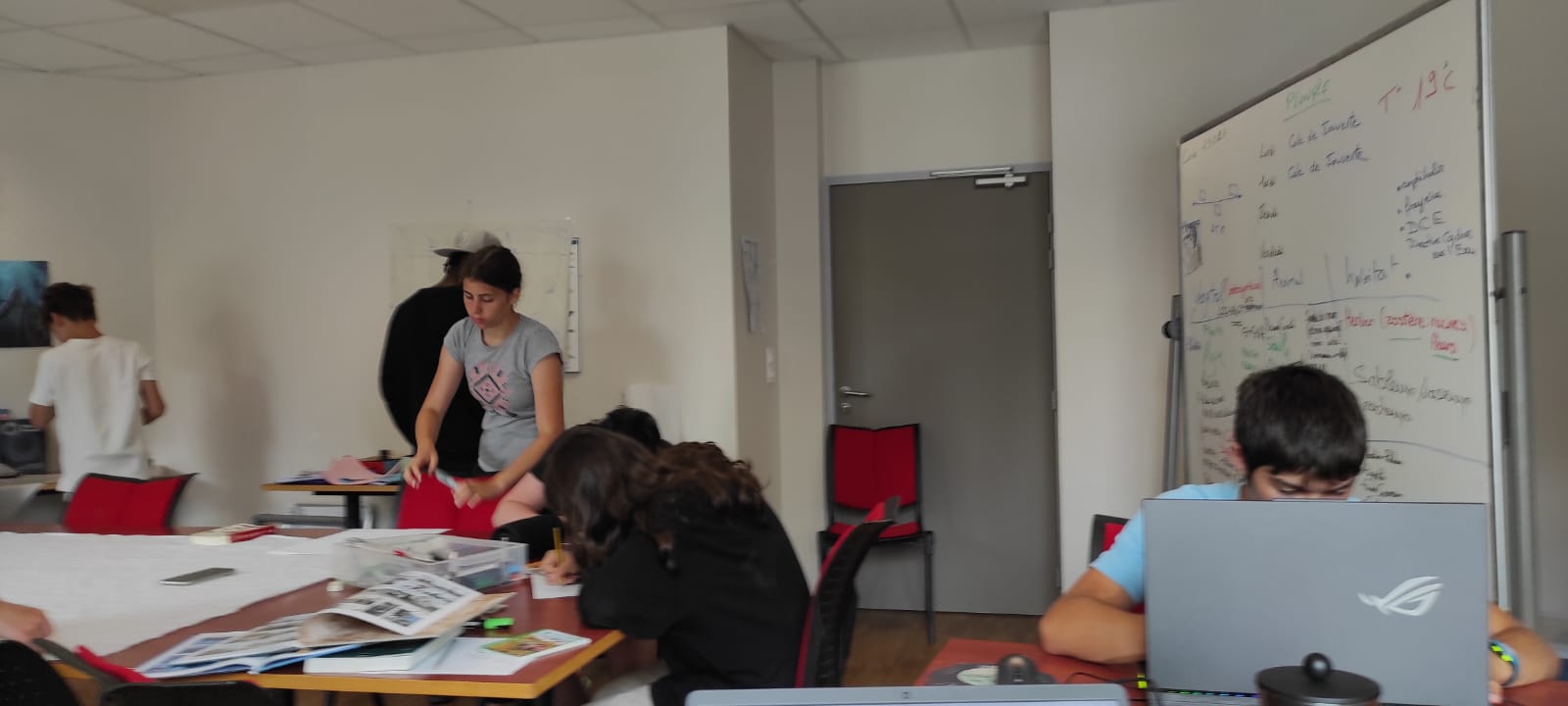 Avec la motivation accompagnée par la tristesse on a commencé la dernière journée de notre séjour. On s’est lancé dans le travail pour la restitution, pour laquelle on a préparé une fresque, une présentation et une vidéo.