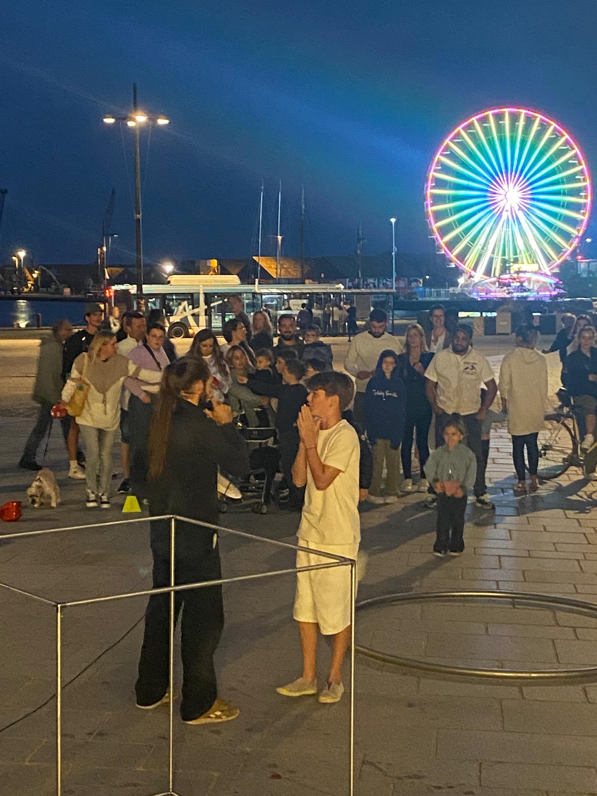 Et pour finir cette fabuleuse journée nous nous sommes arrêtés pour admirer un spectacle de rue effectuer par acrobate manieur de roue cire. Cet homme était très expérimenté dans son art.