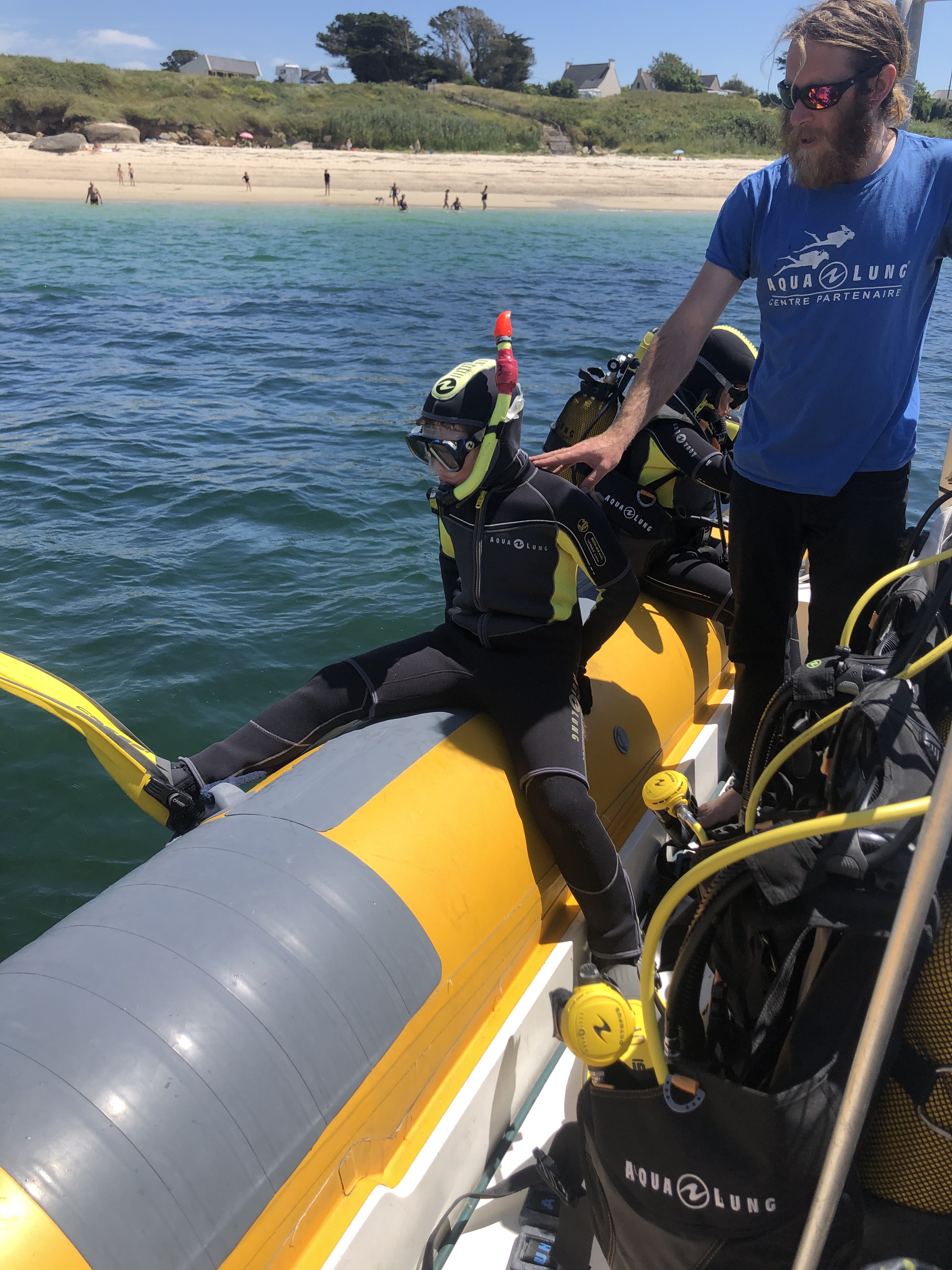 Pour Isild, la plongée a été chouette malgré le mal d’oreilles. Et enfin, Timothée qui n’a pas trop accroché avec la plongée a aimé sauter du bateau, avec la combi, pas de plat possible.